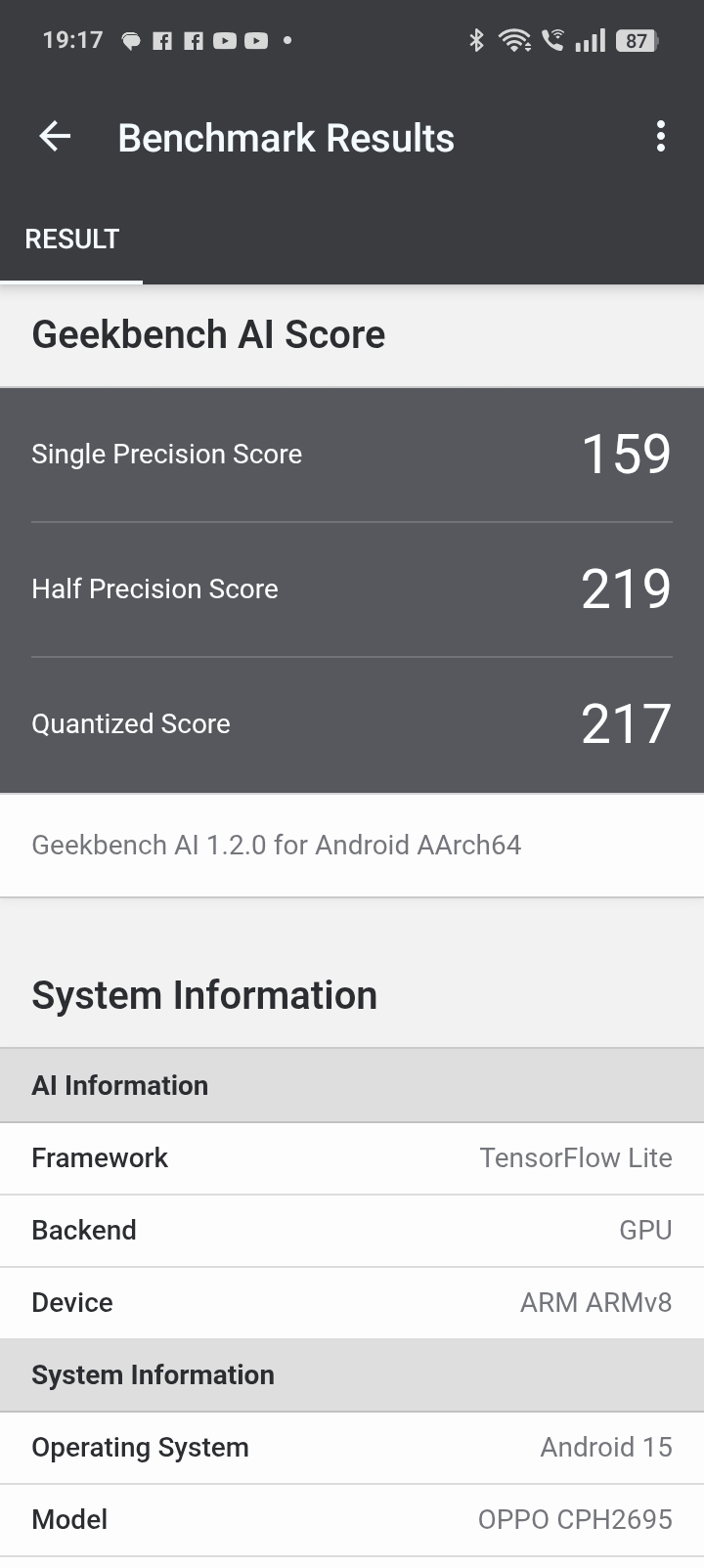 - Geekbench AI GPU: 159 / 219 / 217 pkt