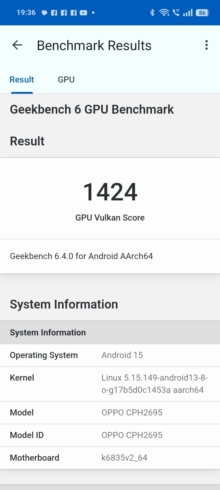 - Geekbench 6 GPU Vulcan: 1424 pkt