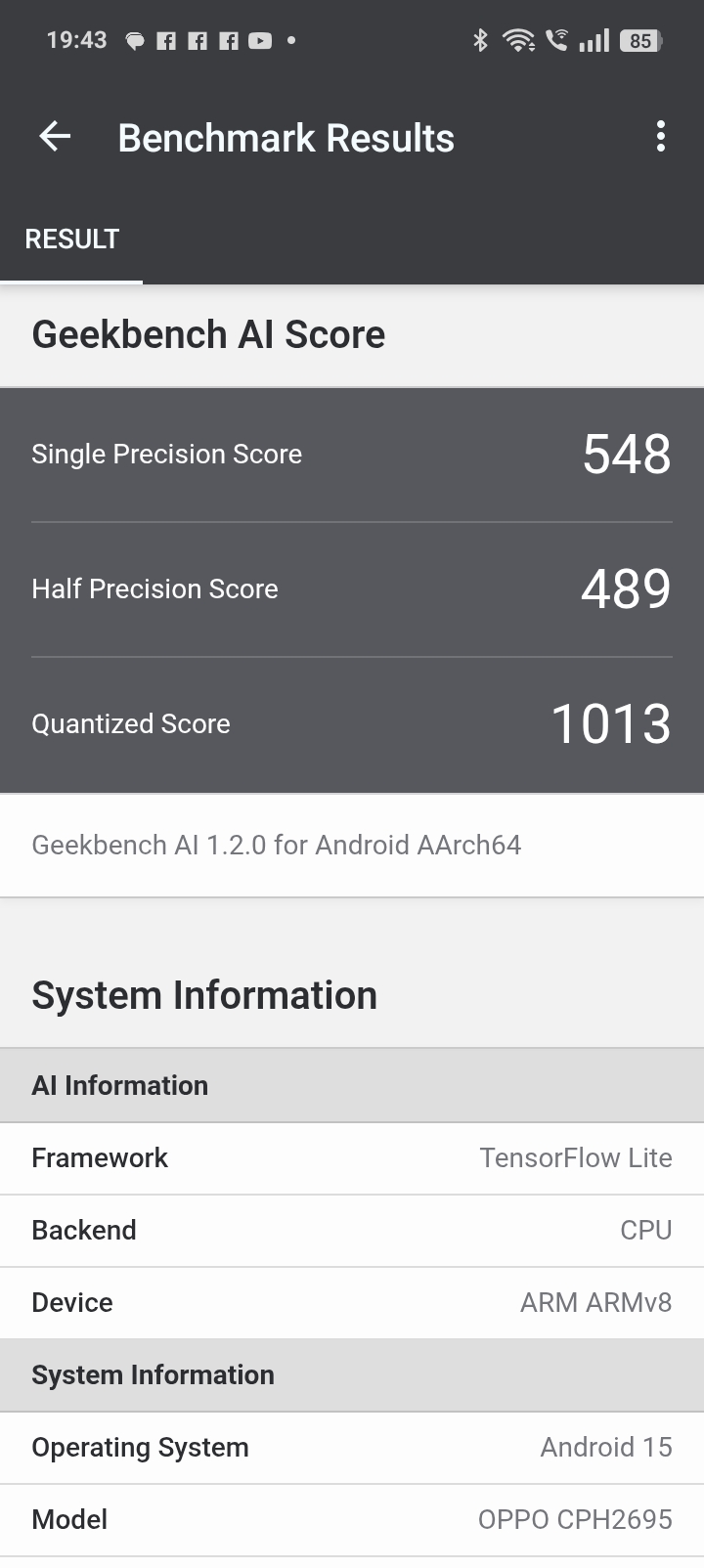 - Geekbench AI CPU: 548 / 489 / 1013 pkt