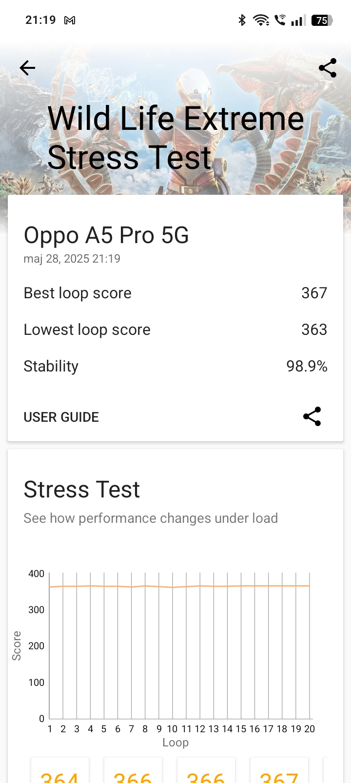 - Wild Life Extreme Stress Test: 367/363 pkt, stabilność 98,9%