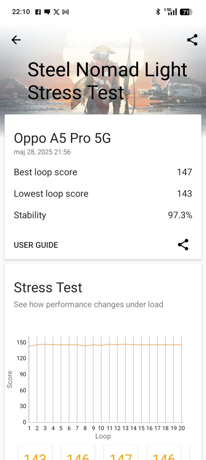 - Steel Nomad Light Stress: 147/143, stabilność 97,3%