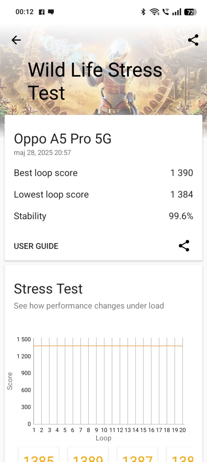 - Wild Life Stress Test: 1390/1384 pkt, stabilność 99,6%