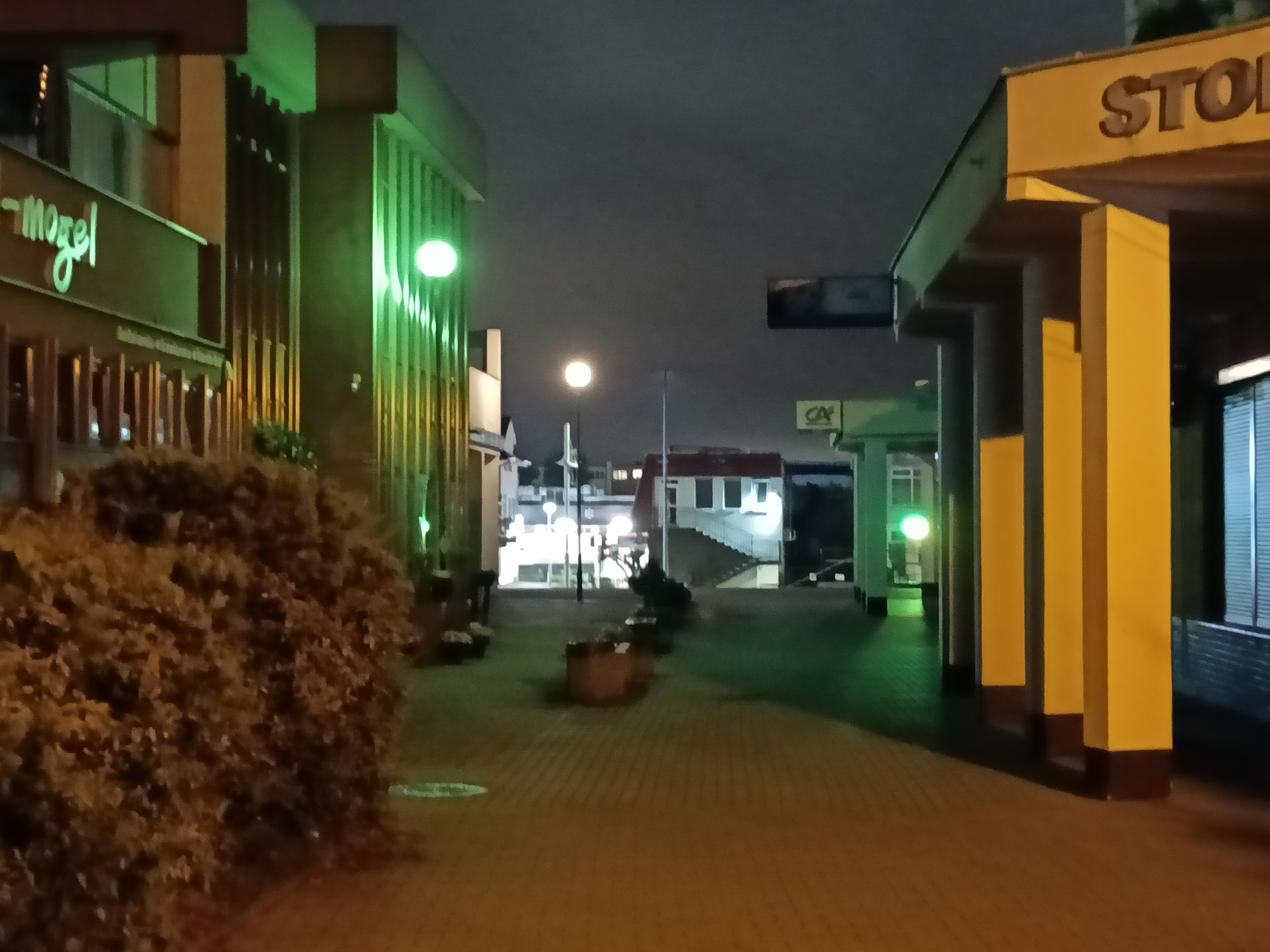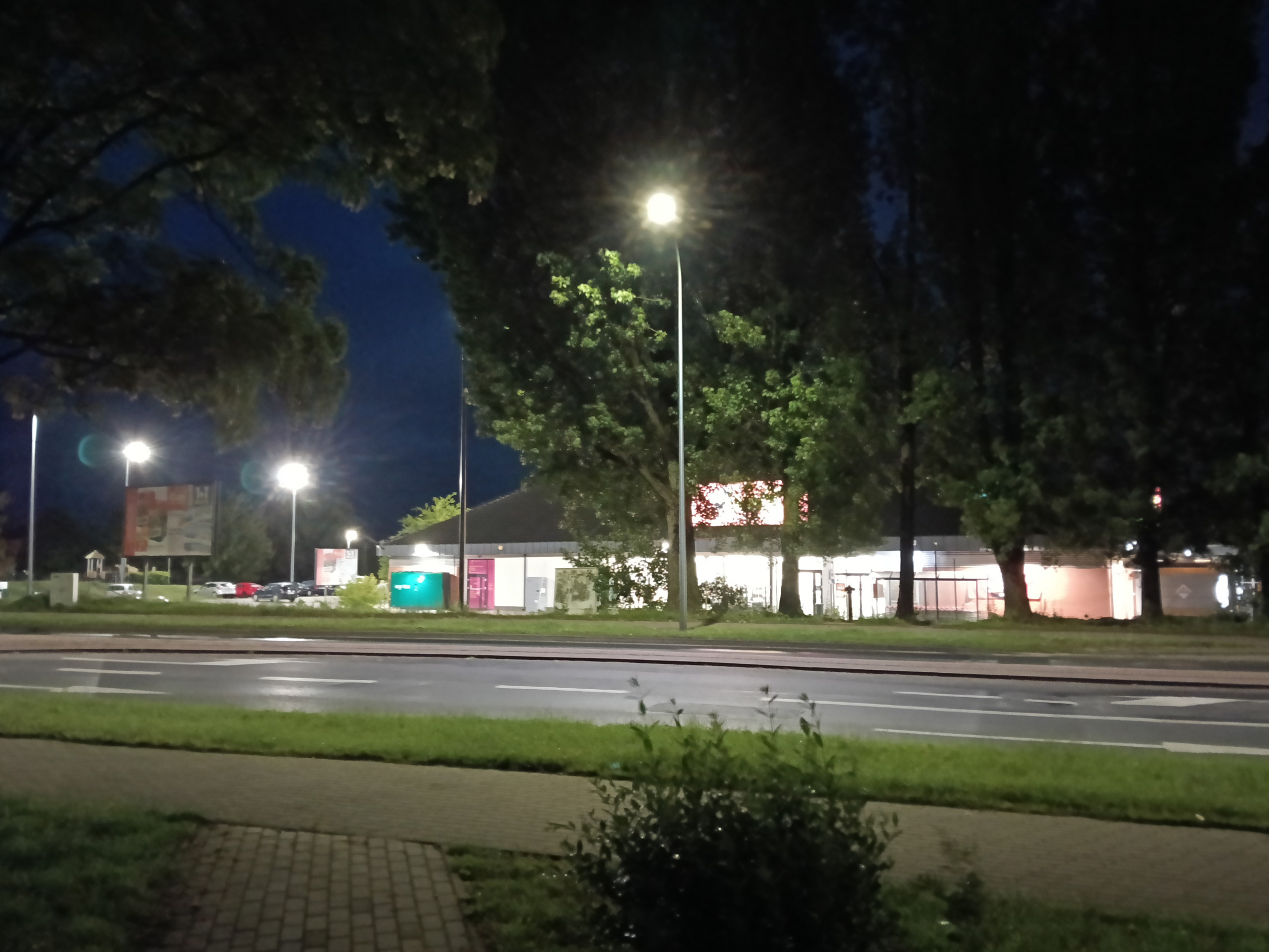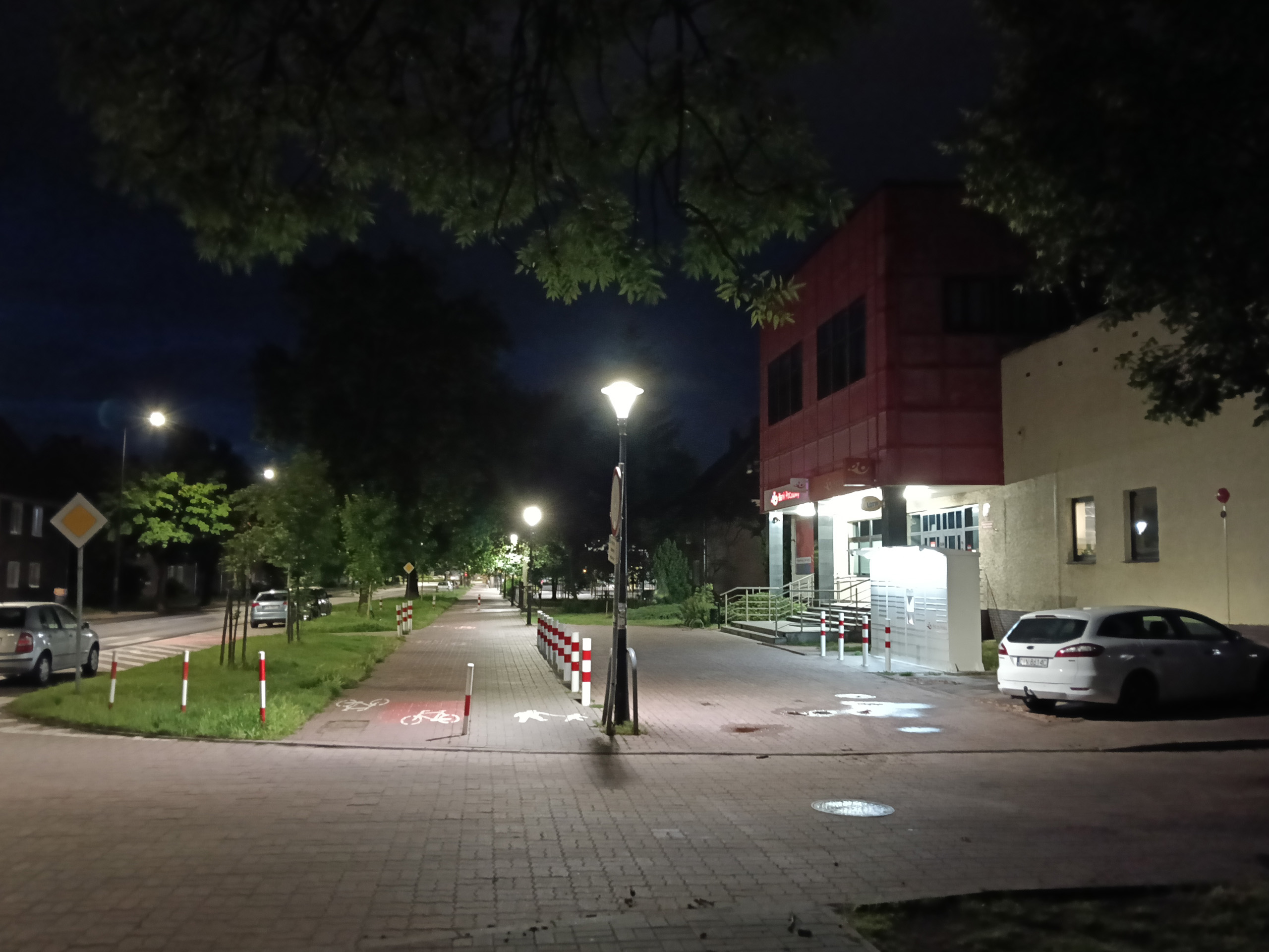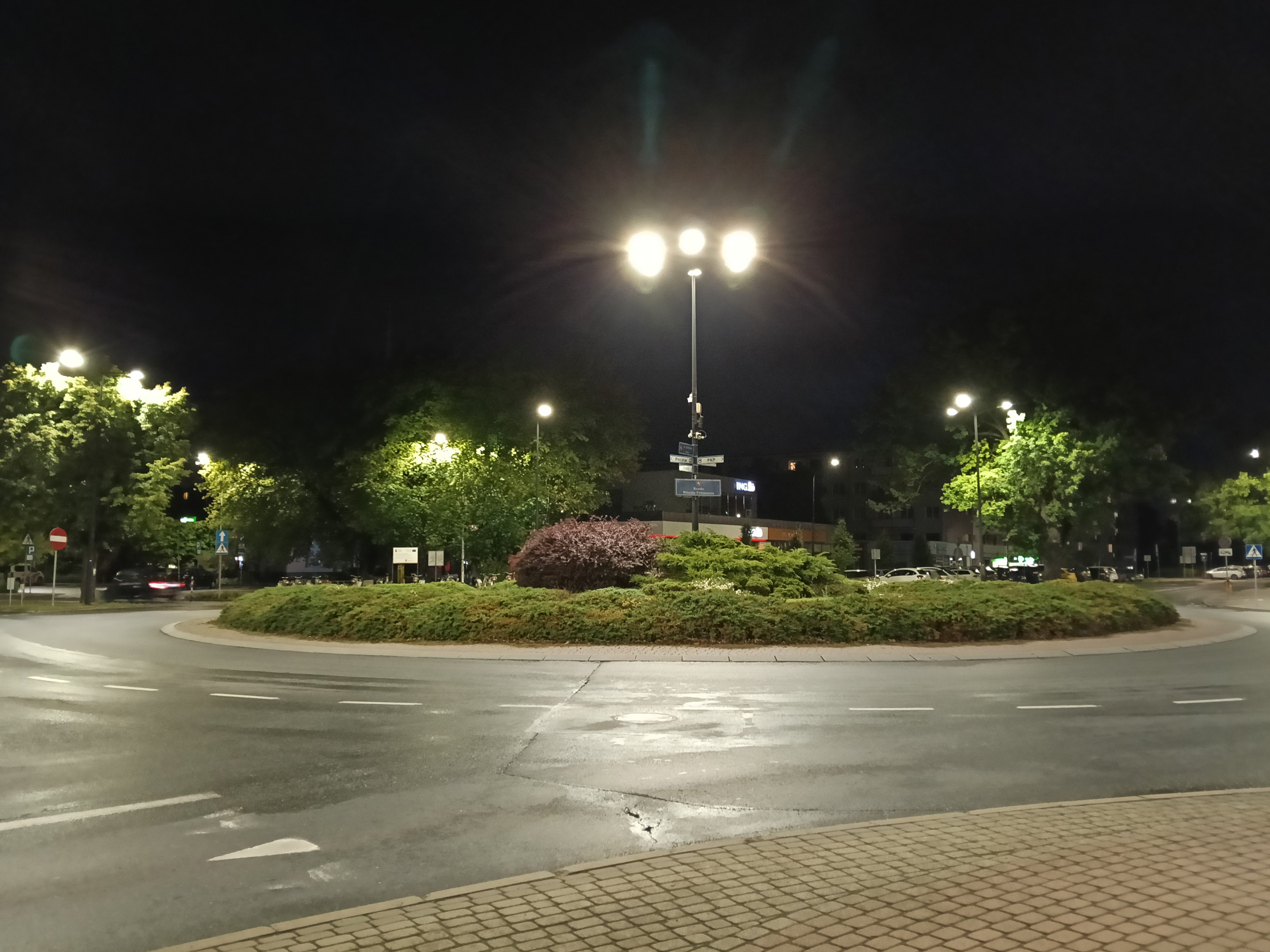 Jakość trybu nocnego jest nieakceptowalna. W A5 Pro 5G trzeba go włączyć ręcznie, zdjęcia wyglądają słabo, nawet gdy zrobione są przy takiej ilości sztucznego światła, że Pixel czy iPhone w ogóle nie uznają potrzeby przełączania się na nocne zdjęcia. Przy skąpym świetle jest zupełnie źle – zdjęcia są pełne artefaktów, wynikających z jednocześnie z agresywnego odszumiania i wyostrzania, brak im szczegółów i ostrości. Powiększenie ×2 nie nadaje się do użytku.