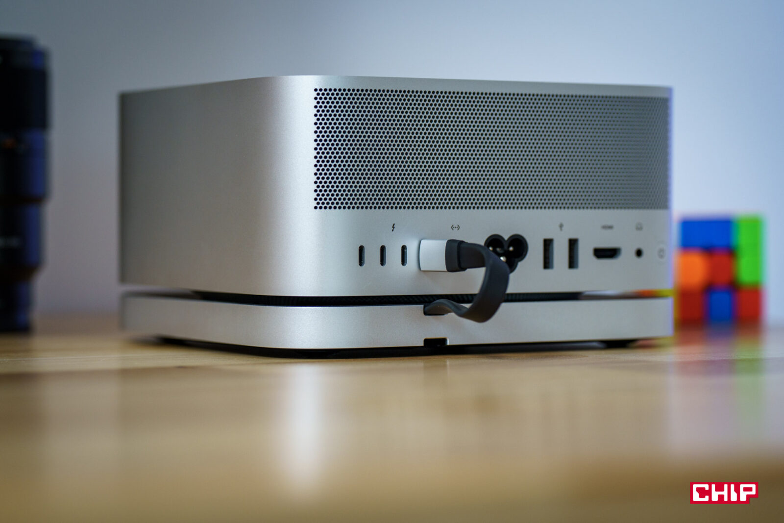 Praktyczne rozwiązanie problemu Wi-Fi: Niektórzy użytkownicy zgłaszają, że włożenie pojedynczej kostki LEGO między hub a Mac Mini przywraca pełną prędkość Wi-Fi – sugeruje to, że problem wynika z zbyt bliskiego kontaktu metalowych obudów.