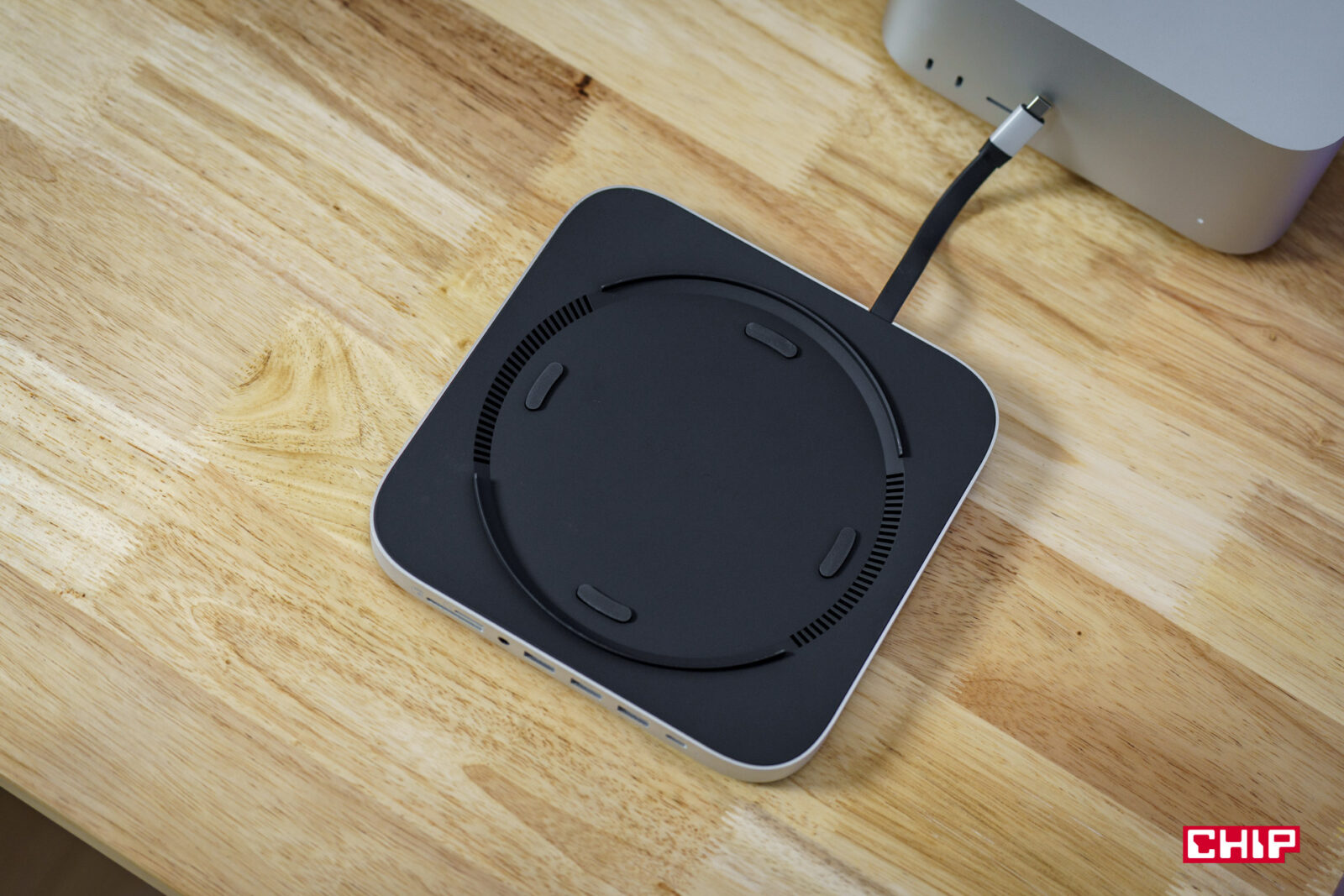 Hub nie sprawia problemów z przegrzewaniem. Aluminiowa konstrukcja skutecznie rozprasza ciepło, a podniesienie Mac Mini zapewnia lepszą wentylację. Po godzinach intensywnej pracy nie zauważyliśmy niepokojących temperatur.