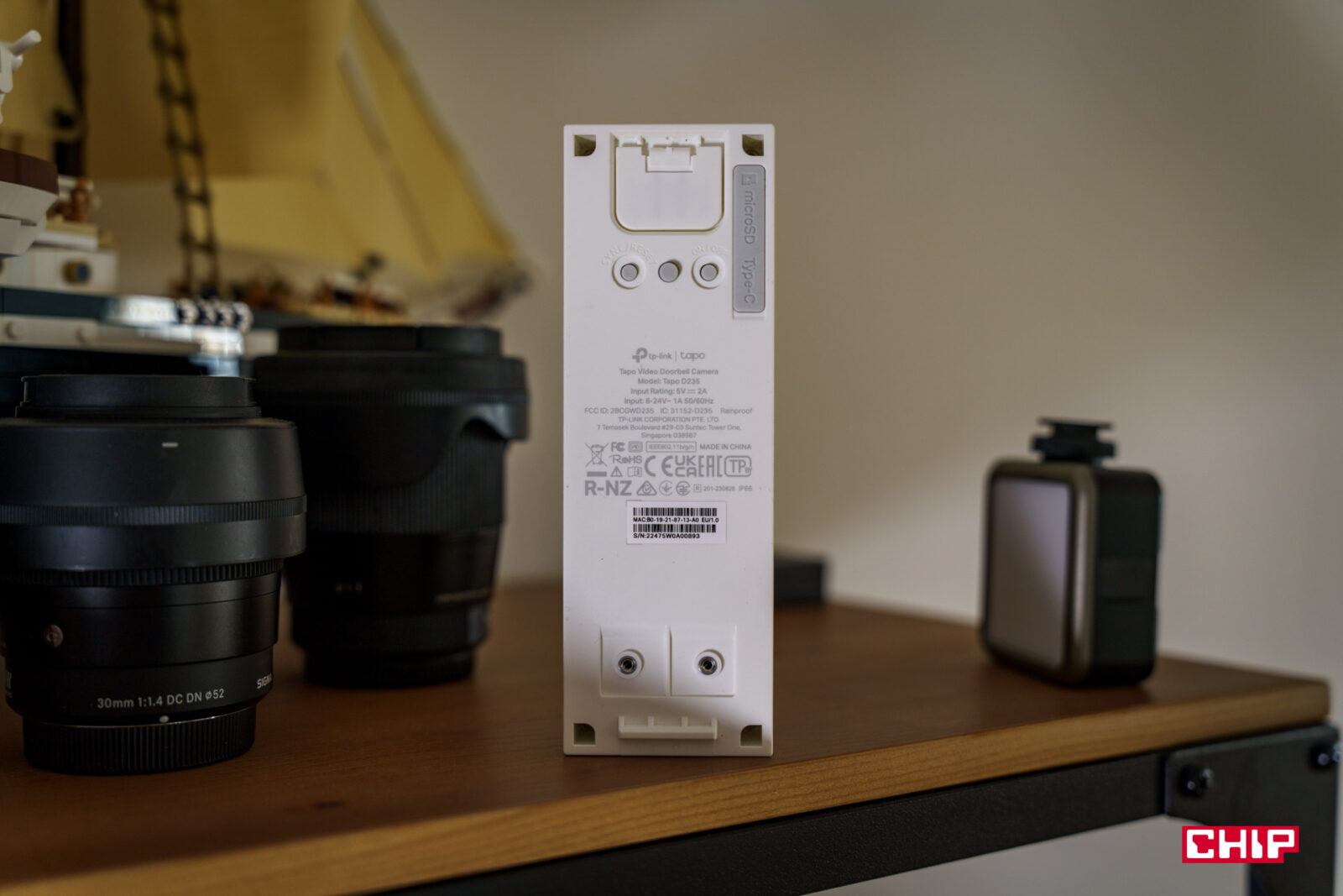 Na tym jednak nie koniec, bo musimy też wybrać sposób zasilania. W przypadku zasilania bateryjnego czas pracy sięga 9 miesięcy i jest to opcja dla osób, które chcą korzystać głównie z podglądu widoku z kamery. Jeśli chcemy, żeby TP-Link Tapo D235 pełnił rolę kamery monitoringu z ciągłym nagrywaniem, wtedy warto wybrać zasilanie przewodowe. Możemy do tego wykorzystać przewody z już posiadanego i zainstalowanego, klasycznego dzwonka.