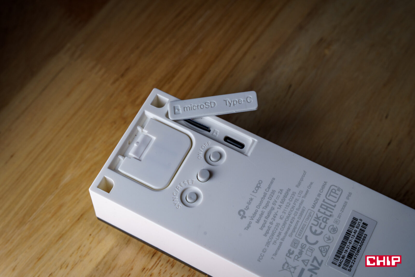 Przed rozpoczęciem użytkowania TP-Link Tapo D235 należy naładować. Wykorzystujemy do tego port USB-C pod zaślepką na tylnym panelu i warto dodać, że służy ona zabezpieczeniu przed wilgocią. Dzwonek jest wodoodporny, zgodnie z normą IP69, więc tak, spokojnie możemy go montować na zewnątrz.