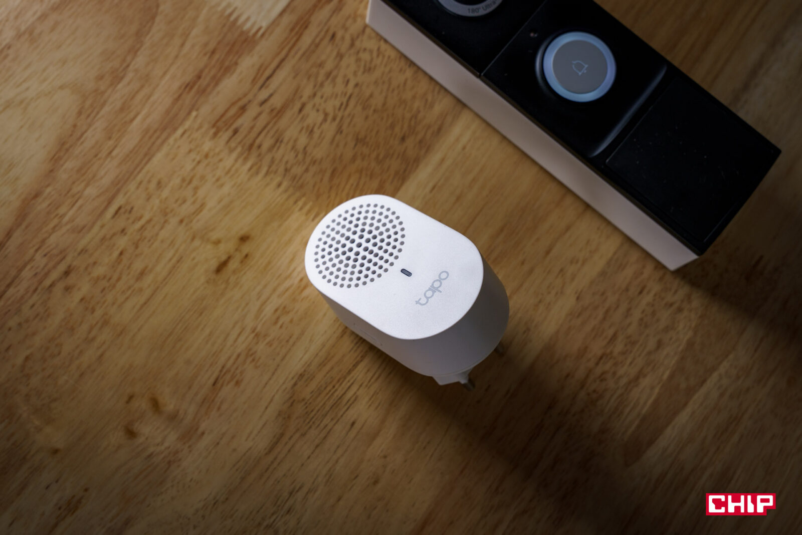 Do wideodzwonka możemy dodatkowo podpiąć dzwonek z zestawu i to jednak z dwóch opcji. Bo być może mamy już hub Tapo z funkcją dzwonka i on może zostać tutaj użyty. Jeśli nie, wykorzystujemy dzwonek z zestawu. Podłączamy go do gniazdka i jest on automatycznie wykrywany w procesie parowania.