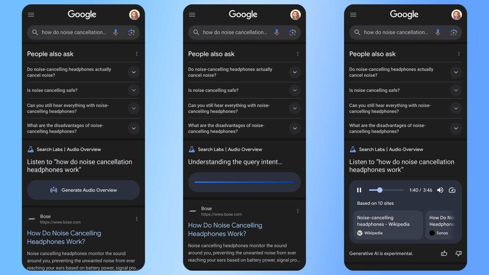 Dla tych, którzy nie lubią czytać długich treści, Google szykuje nie lada gratkę. W ramach programu Search Labs dostępnego dla wybranych kont w wybranych rejonach, użytkownicy mogą odsłuchać odpowiedzi na wybrane zagadnienia. Podsumowania audio są generowane na bazie publikacji z wielu stron i dotyczą kwestii, które wymagają pewnego wytłumaczenia. Nie pojawiają się one w górnej części wyszukiwania, którą teraz najczęściej zajmuje “Przegląd od AI”.