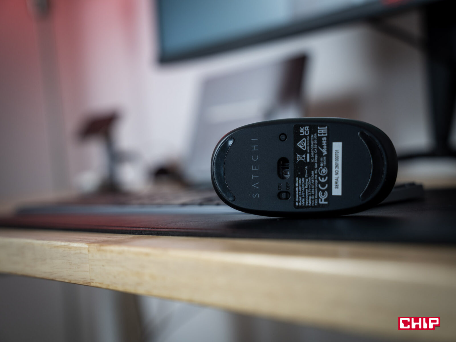 Ergonomiczny kształt Satechi M1 dobrze leży w dłoni, niezależnie od tego, czy jesteś prawo-, czy leworęczny. Waga (około 175 g) i dobrze wyważony środek ciężkości sprawiają, że przesuwanie jej po biurku nie wymaga żadnego wysiłku, ale — jak w przypadku klawiatury — nie sprawia też wrażenia plastikowej zabawki. Jest lekka, ale solidna. Aluminiowa obudowa (ponownie w kolorze Space Grey) nie tylko wygląda świetnie, ale też daje poczucie trwałości. Mysz nie skrzypi, nie ugina się pod palcami, a jej klik, choć cichy, jest wyraźnie wyczuwalny i satysfakcjonujący.