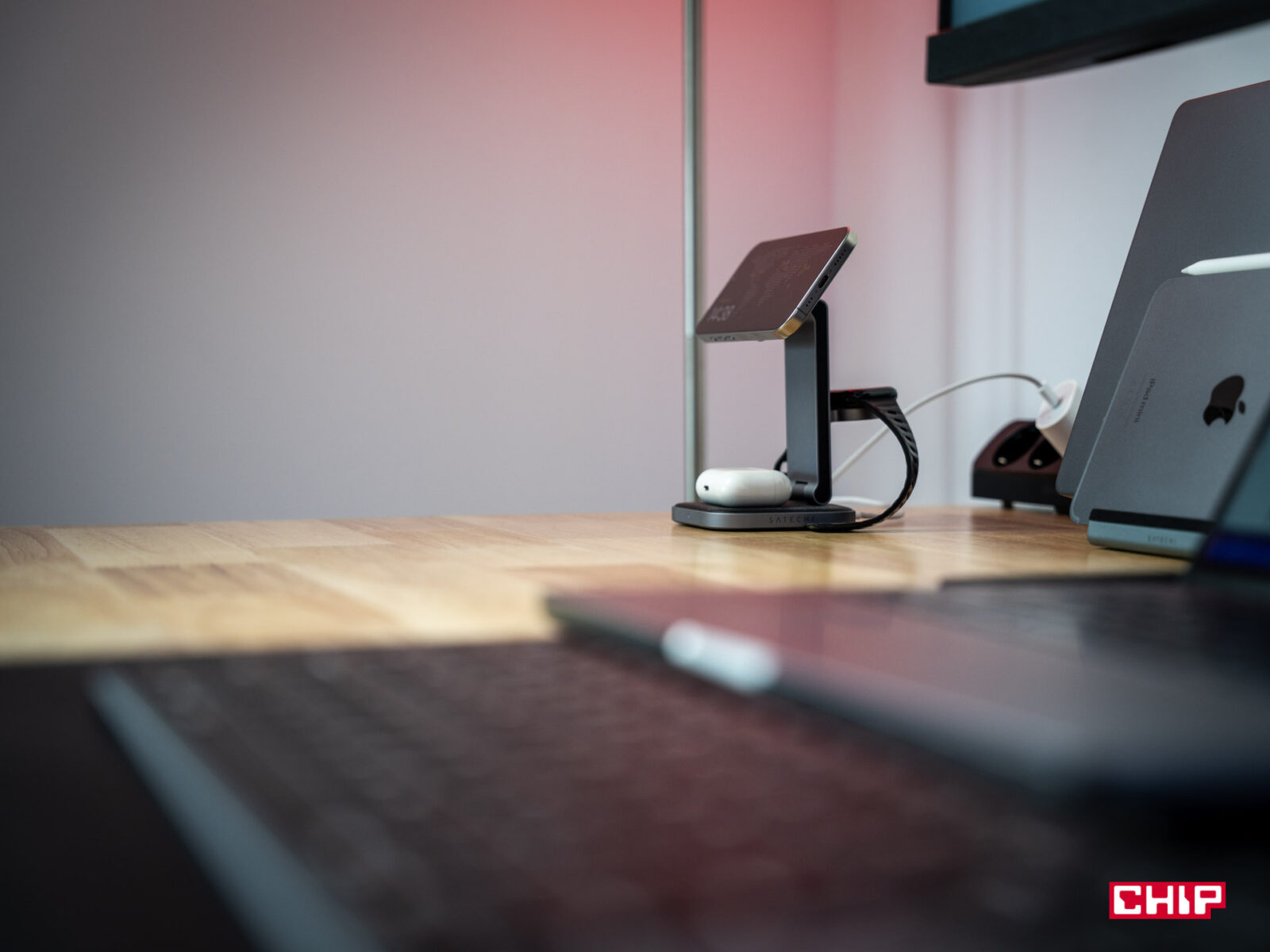 Z punktu widzenia codziennego użytkownika siedzącego przy biurku największą zaletą tej stacji jest to, że rozwiązuje problem, który wcześniej był dla mnie irytujący: trzy urządzenia i trzy różne ładowarki, każdy z innym kablem i innym miejscem do ładowania. Tutaj wszystko ładuje się razem, w jednym miejscu, z jednego źródła, bez żadnego bałaganu. Biurko wreszcie wygląda schludnie.