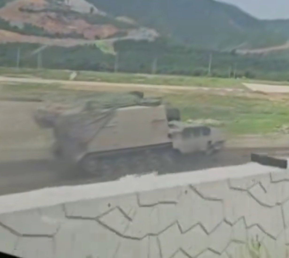 Haubica bazuje na nowym podwoziu gąsienicowym o zwiększonej nośności i prędkości maksymalnej do 110 km/h. Może skręcać w miejscu, a dzięki aktywnemu zawieszeniu pokonuje trudny teren i cechuje się odpornością na miny. Podwozie pozwala przenosić ładunki o masie powyżej 15 ton i to z dużym zapasem na pancerz, systemy ochrony czy dodatkowe uzbrojenie. Na najnowszych zdjęciach powyżej możemy też dostrzec bliźniaczy pojazd do uzupełniania amunicji, który jest zbudowany na tym samym podwoziu. Sugeruje to zmianę doktryny, bo zamiast klasycznego ogniowego wsparcia angażującego cały personel, SH‑16 może realizować ciągły ostrzał w trybie półautonomicznym z minimalnymi przerwami logistycznymi.