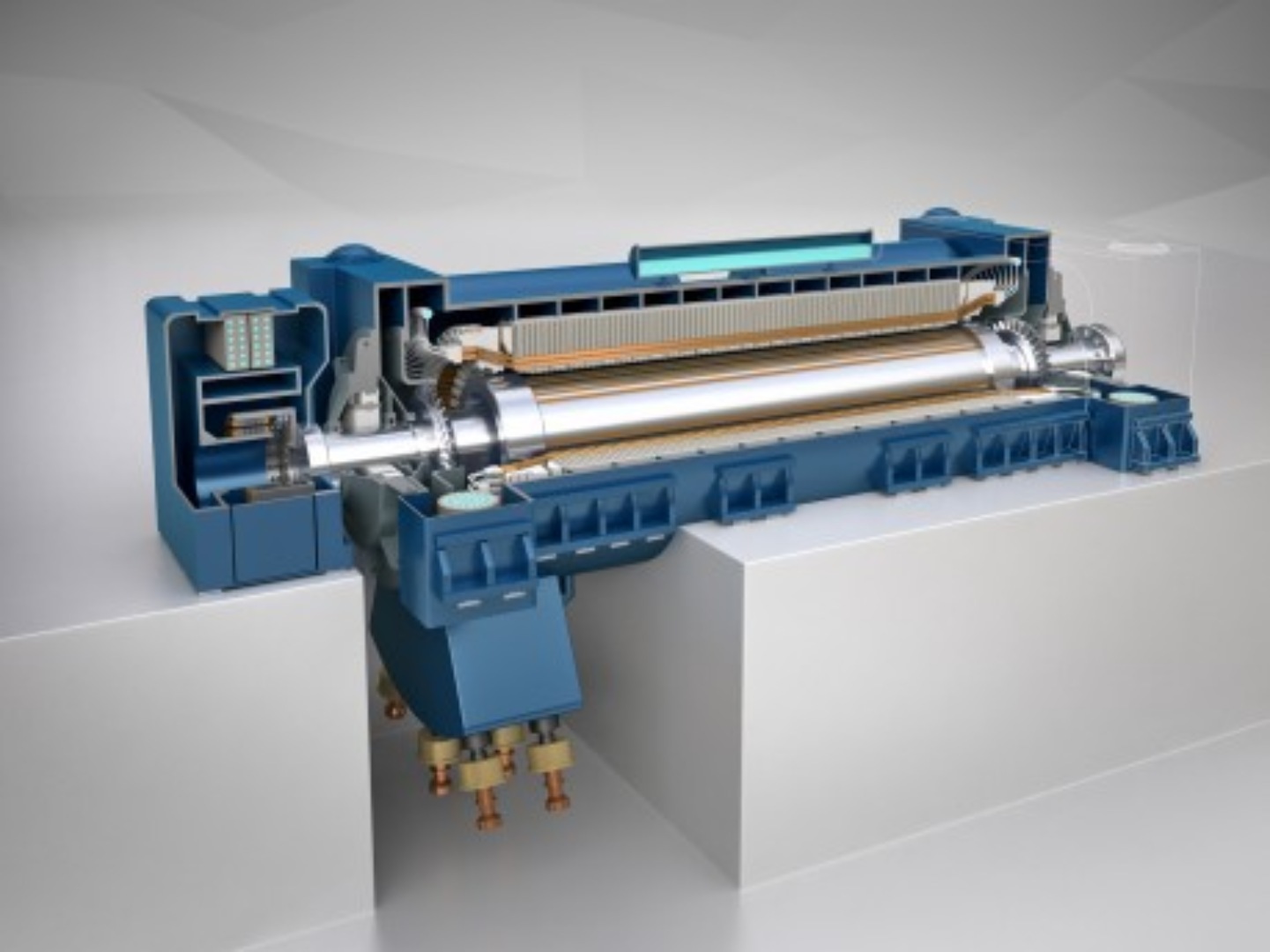 Rozwijany przez GE Vernova Hitachi Nuclear Energy reaktor BWRX-300 reprezentuje nową generację technologii jądrowych. To chłodzony wodą SMR, który wykorzystuje naturalną cyrkulację i pasywne systemy bezpieczeństwa, umożliwiające chłodzenie przez minimum siedem dni bez zasilania lub ingerencji operatora. Planowana konstrukcja turbiny w Ontario obejmie z kolei moduł wysokociśnieniowy o pojedynczym przepływie oraz dwa moduły niskociśnieniowe o podwójnym przepływie, co ma podnieść sprawność całego układu. Sprzężona zostanie z kolei z generatorem TOPAIR chłodzonym powietrzem o mocy do 370 MVA.