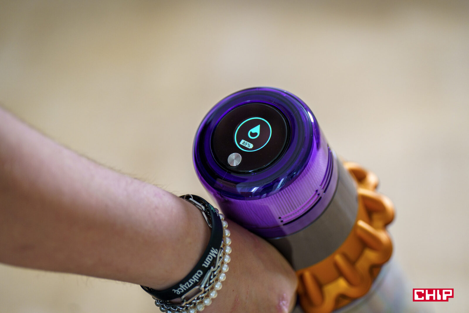 Co jednak jest dużo mniej sensowne, to fakt, że elektroszczotka Submarine nie jest kompatybilna z innymi modelami Dysona, w tym z V15 Detect. Jeśli macie więc flagowca brytyjskiej firmy w swoim domu i doszliście do słusznego wniosku, że skoro całe mokre sprzątanie odbywa się tylko w końcówce, to nic nie stoi na przeszkodzie, żebyście ją sobie dokupili… cóż, nie mam dobrych informacji. Chociaż sam odkurzacz faktycznie wykrywa końcówkę Submarine, co możemy zobaczyć przez pojawienie się ikony kropli wody na wyświetlaczu, to jest to raczej kwestia oprogramowania, która spokojnie byłaby do obejścia. Dyson nie daje jednak takiej możliwości i jeśli macie V15 Detect, a chcecie też mieć funkcję aktywnego mycia, to musicie kupić cały nowy odkurzacz. Szkoda.