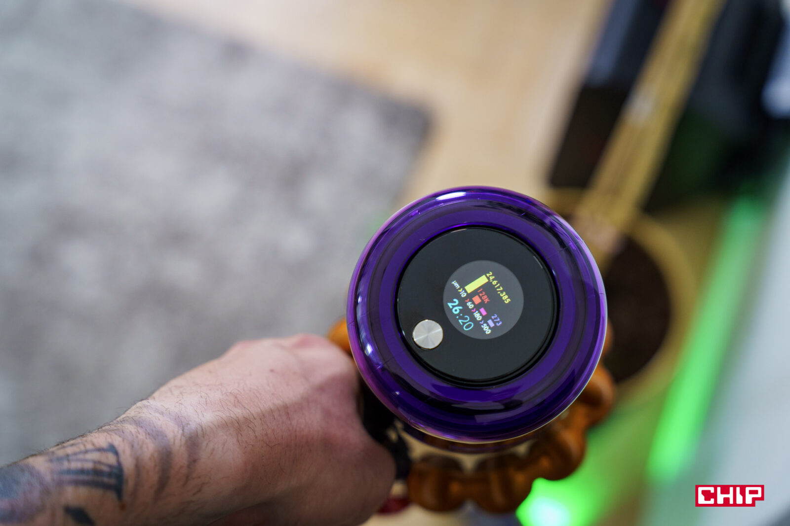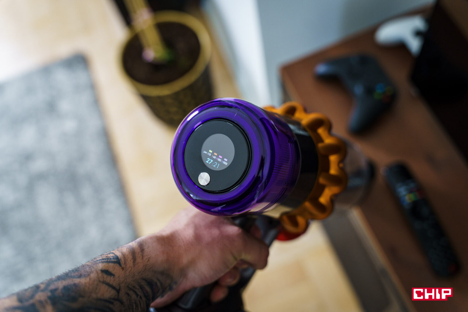 Na pochwałę zasługuje jednak ekran LCD na odkurzaczu, który wyświetla informacje o trybie pracy, poziomie baterii czy ilości zebranego kurzu, który dzieli na wielkości cząsteczek i liczy je dokładnie. To doskonałe rozwiązanie dla fanów technologii i osób lubiących śledzić statystyki — mnie to całkowicie kupiło. W kontekście Dysona V15s Detect Submarine warto jeszcze zwrócić uwagę na bezdotykowe opróżnianie pojemnika na kurz. To higieniczne i wygodne rozwiązanie, które minimalizuje kontakt z brudem.