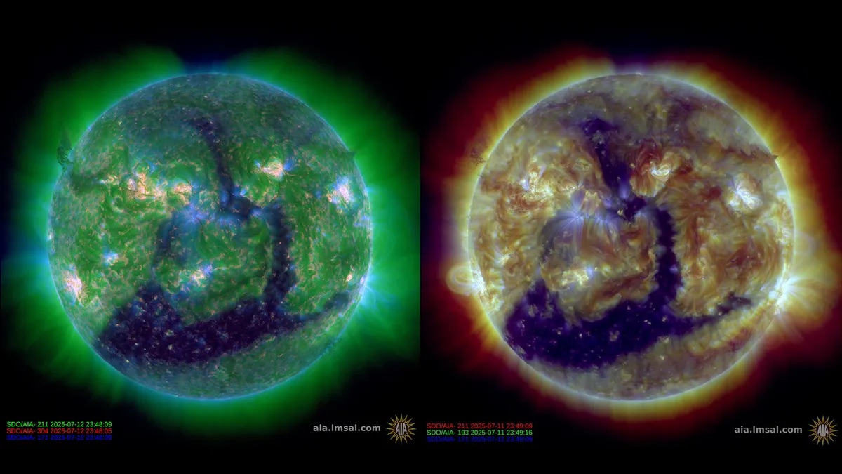 Naukowcy przyglądający się Słońcu w kolejnych dniach zaobserwowali pojawianie się na powierzchni obracającego się z wolna wokół własnej osi Słońca kolejnych dziur koronalnych. Stopniowo dołączały one do pierwotnej gigantycznej już dziury, jedynie zwiększając jej rozmiary. To właśnie ta gigantyczna struktura obecnie kształtuje warunki pogody kosmicznej po naszej stro nie Układu Słonecznego.