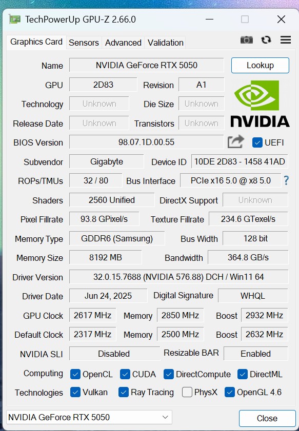- Nvidia GeForce RTX 5050: Game Ready 576.88