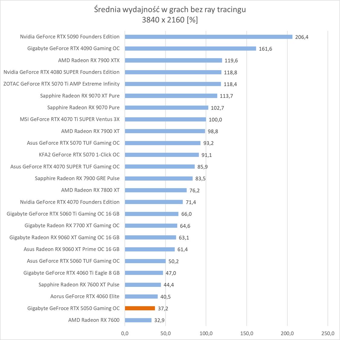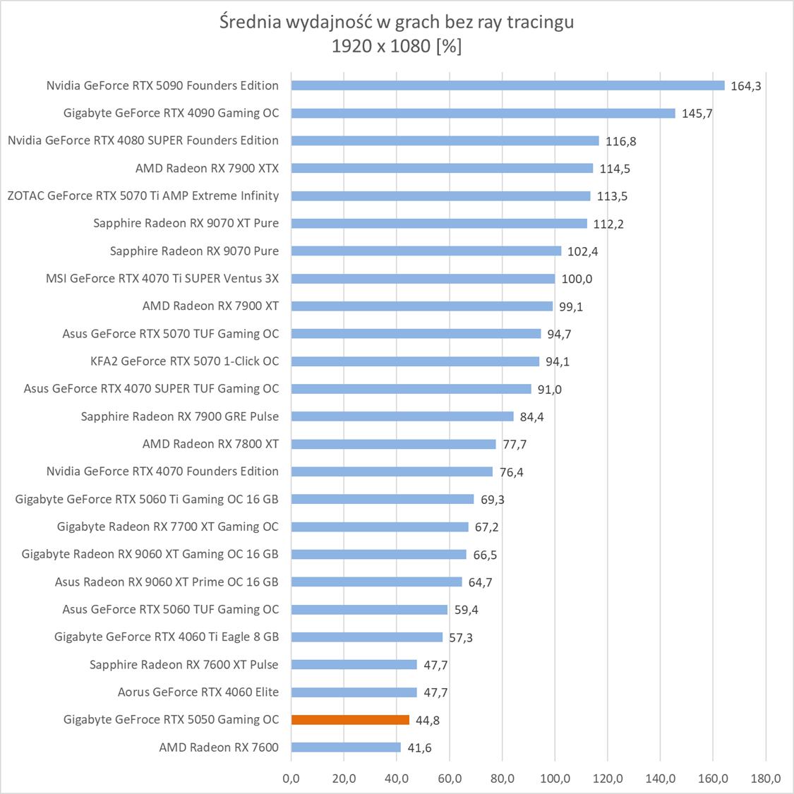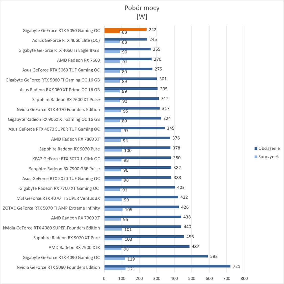 Powtórzymy ponownie, że Gigabyte zrobił co mógł z RTX 5050 i jeśli jakimś cudem zdecydujecie się na jej zakup, to warto zwrócić uwagę na ten model. Ale wszystkie modele z tej serii są po prostu za drogie i oferują zbyt niską wydajność jak na taką cenę. Powinny one kosztować bliżej 800 zł i w takiej cenie można by też wybaczyć obecność tylko 8 GB pamięci (choć i tak Intel Arc B570 ma 10 GB, a najtańsze modele są za ok. 850 zł). Natomiast na pewno w cenie powyżej 1000 zł nie da się w ogóle uzasadnić sensu zakupu jakiegokolwiek modelu z tej serii kart.