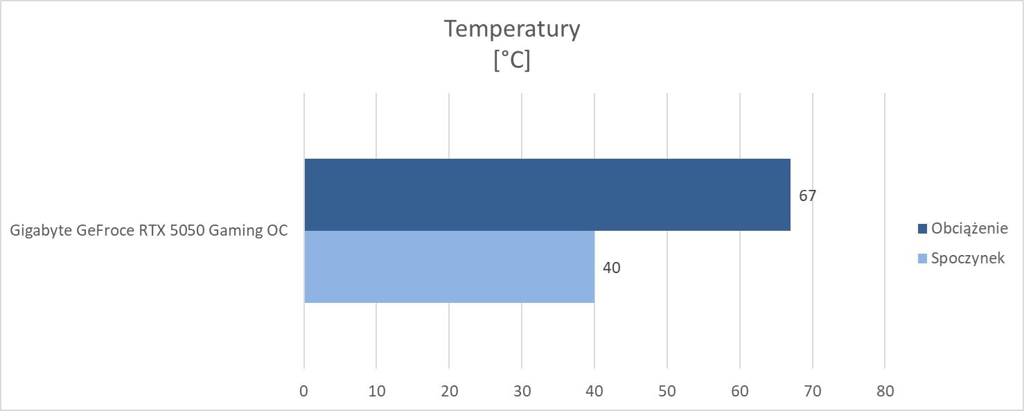 W spoczynku grafika pracuje pasywnie. Pod obciążeniem jest bardzo cicho i to na pewno jest plus Gigabyte GeForce RTX 5050 Gaming OC.