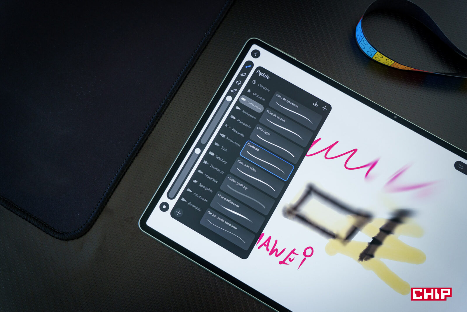 Powłoka PapperMatte odnosi się nie tylko do matowej powłoki, ale też tego, jak reaguje ona na rysik. Podczas pisania dosłownie ma się wrażenie pisania po papierze i faktycznie, pisanie niewiele odbiega od tego tradycyjnego. Więc jeśli ktoś szuka tabletu, który sprawdzi się jako notatnik, ale nie do końca jest przekonany do cyfrowego pisania, to to jest odpowiedni adres. Rysik wzorowo reaguje na dotyk i korzystanie z niego to czysta przyjemność.