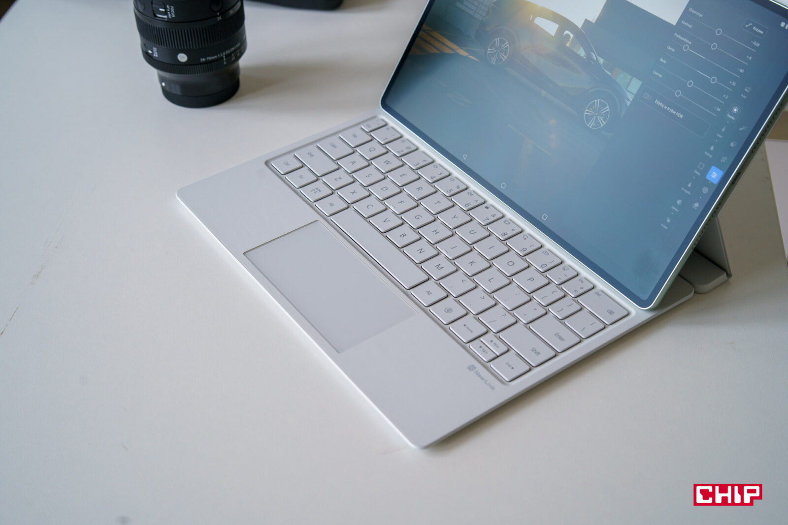 Czy klawiatura dołączana do zestawu to wygodne narzędzie do pisania? Jest dobrze, choć tu ponownie, ale… pod warunkiem wyłączenia autokorekty. Ta jest bardzo agresywna i za nic nie umiałem się z nią dogadać, więc to jest koniecznie do wyłączenia jeśli planujecie pisać dłuższe teksty. Opanować też trzeba przełączanie się między klawiaturami, bo początkowo miałem tak, że po odpięciu tabletu od klawiatury nie mogłem nic wpisać na ekranie, bo cały czas byłem połączony z klawiaturą przez Bluetooth. Ale to tylko kolejna rzecz do opanowania i przyzwyczajenia się. Sama klawiatura jest całkiem wygodna, w zasadzie nie odbiega pod tym względem od innych tabletowych konstrukcji, choć klawiatury do iPadów są wg mnie troszkę wygodniejsze. Brakuje tu tylko jednego elementu – podświetlenia, bo klawisze nie są podświetlane.