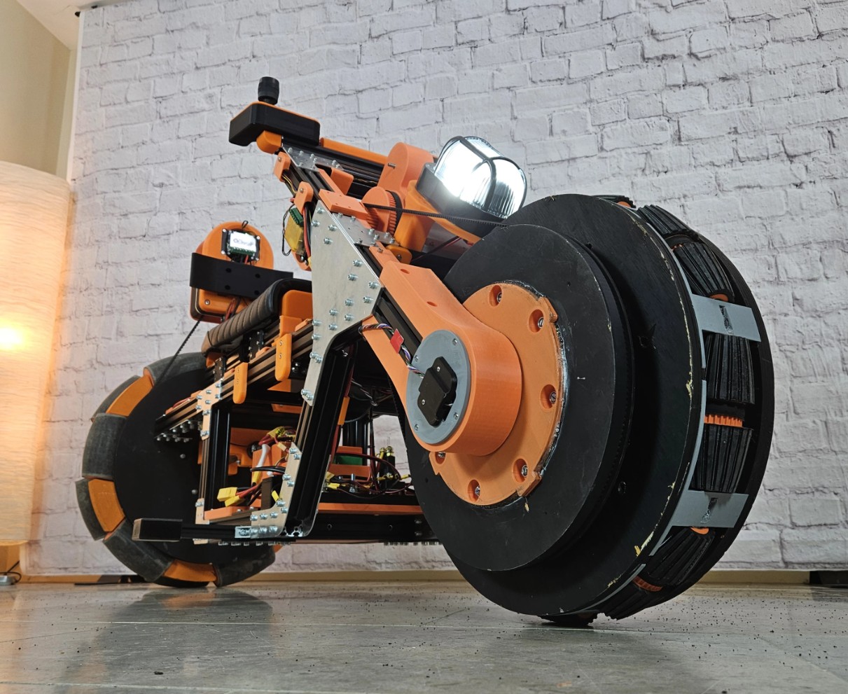 James Bruton, były projektant zabawek, a dziś popularny youtuber zajmujący się robotyką, stworzył już kilka pojazdów z wielokierunkowymi kołami, ale jego najnowszy projekt (motocykl typu chopper o nazwie Sidewinder) wyróżnia się na tle poprzednich. Zamiast tradycyjnych kół Bruton wykorzystał dwa ogromne koła wielokierunkowe – jedno z przodu, drugie z tyłu, które podkradł ze swoich wcześniejszych projektów. Efekt? Pojazd samopoziomujący się za pomocą jednostki inercyjnej (IMU), który porusza się do przodu, do tyłu i… nawet bokiem.