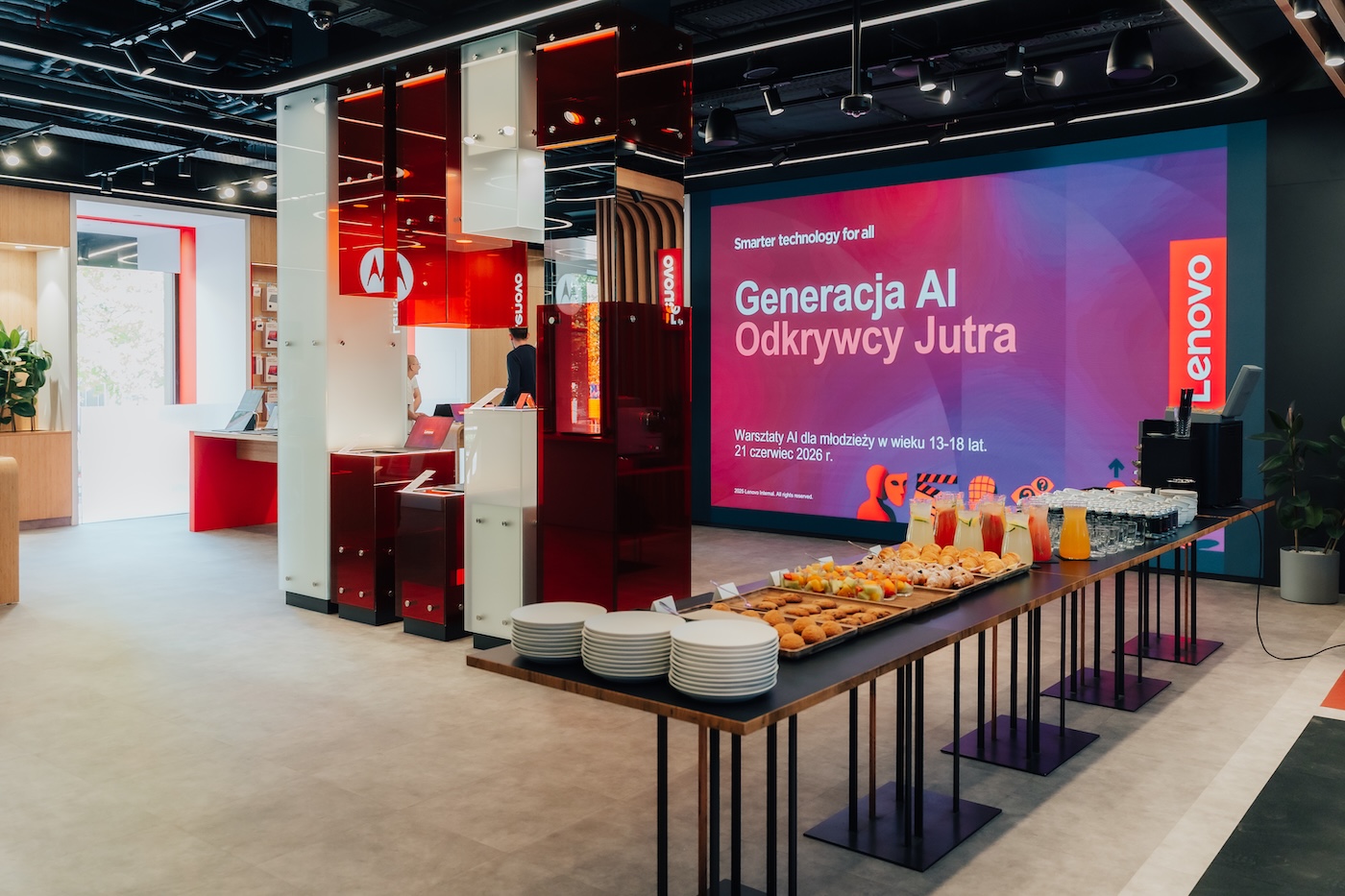 Showroom Lenovo i Motorola to świeżo otwarte miejsce, którego celem od początku było wykraczanie poza tradycyjną prezentację produktów. Firma chciała stworzyć przestrzeń, gdzie technologia staje się pomostem do rozwoju — a ostatnie warsztaty pokazały, że misja ta jak najbardziej się powiodła. 21 czerwca Showroom zamienił się w laboratorium przyszłości, w którym młodzież zgłębiała tajniki sztucznej inteligencji. Dwie sesje warsztatów, rozpoczęte o 11:00 i 13:00, poprowadzili eksperci Karol Stryja i Marcin Sawicki ze szkolapromptowania.com. Ich zadaniem było „odczarowanie” AI — pokazanie, że to nie rozwiązanie, którego należy się obawiać w dłuższej perspektywie np. w kontekście utraty miejsc pracy, a praktyczne narzędzie, które jest po to, żeby nam pomóc zarówno w nauce, pracy jak i życiu codziennym.