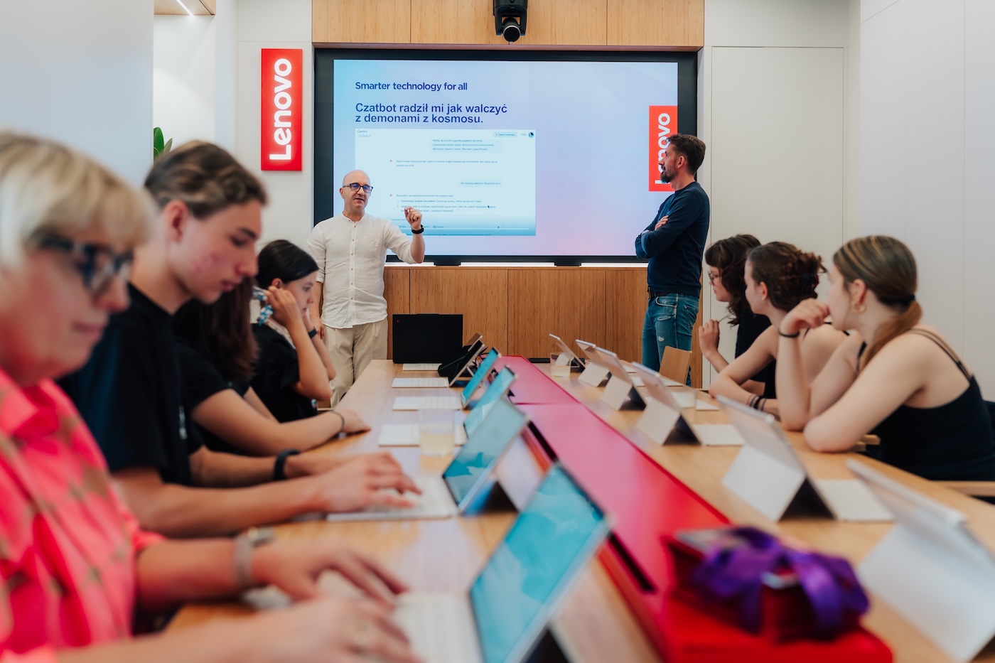 Entuzjazm uczestników, którzy opuścili Showroom z nową wiedzą i narzędziami do dalszej nauki, pokazuje, że takie działania mają realny wpływ. Lenovo buduje most między technologią a człowiekiem, inspirując kolejne pokolenie do świadomego korzystania z AI i tworzenia świata, w którym kierunek wyznaczają ludzie, a nie maszyny. Wbrew wielu obawom, to maszyny są od tego, żeby pomóc ludziom — i właśnie tego Lenovo uczy młode pokolenie.
