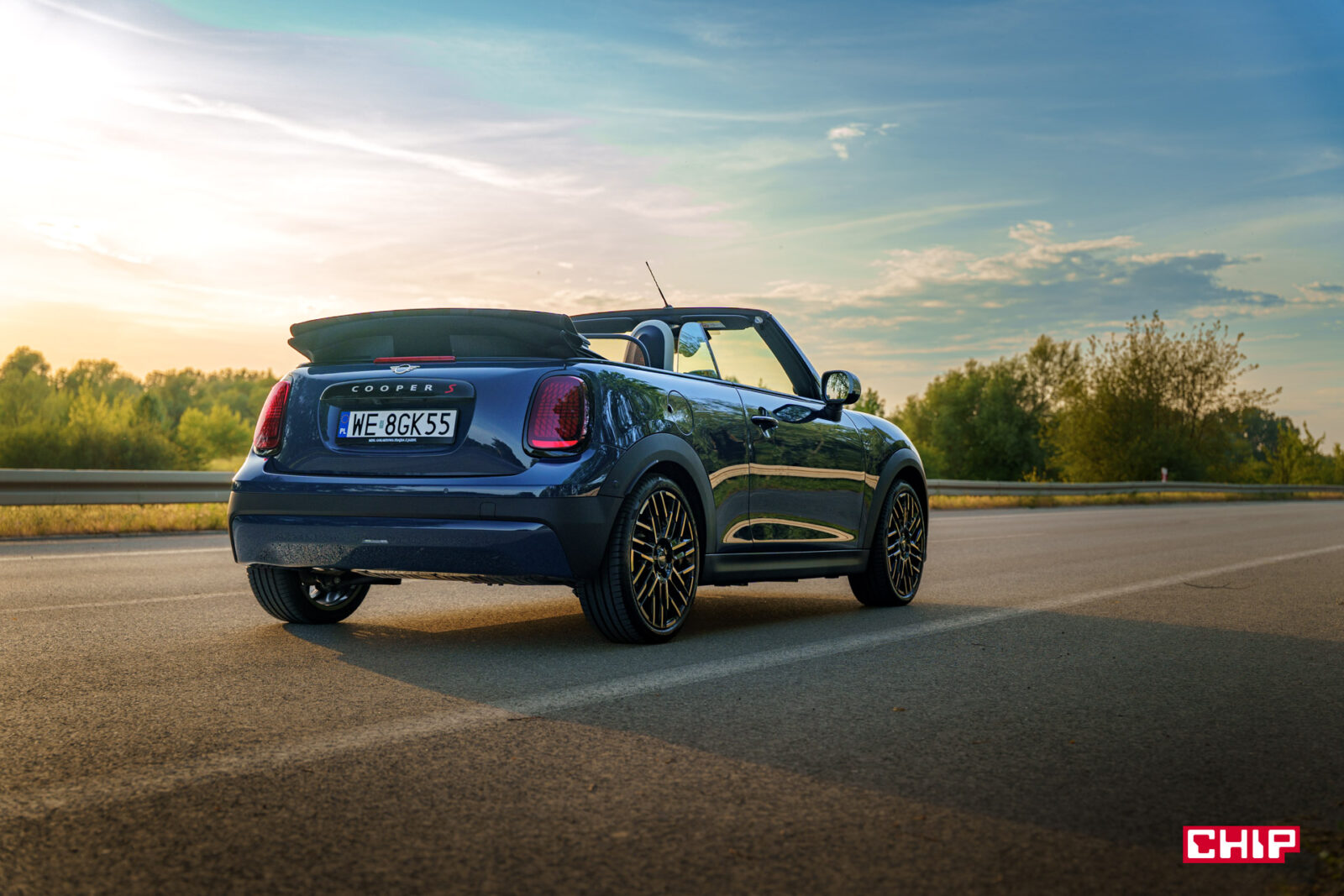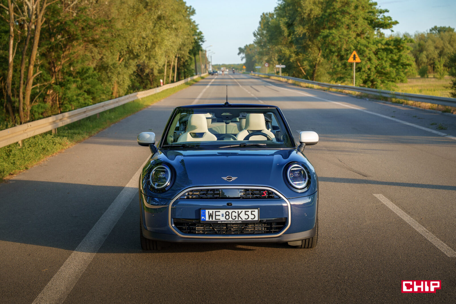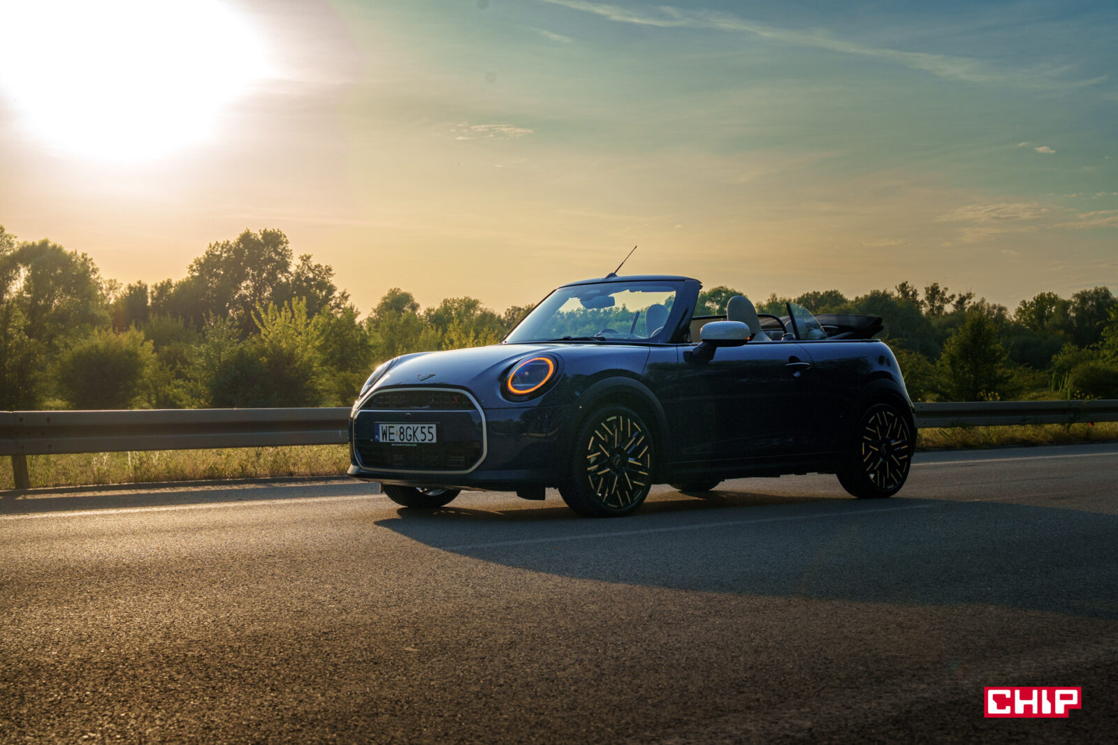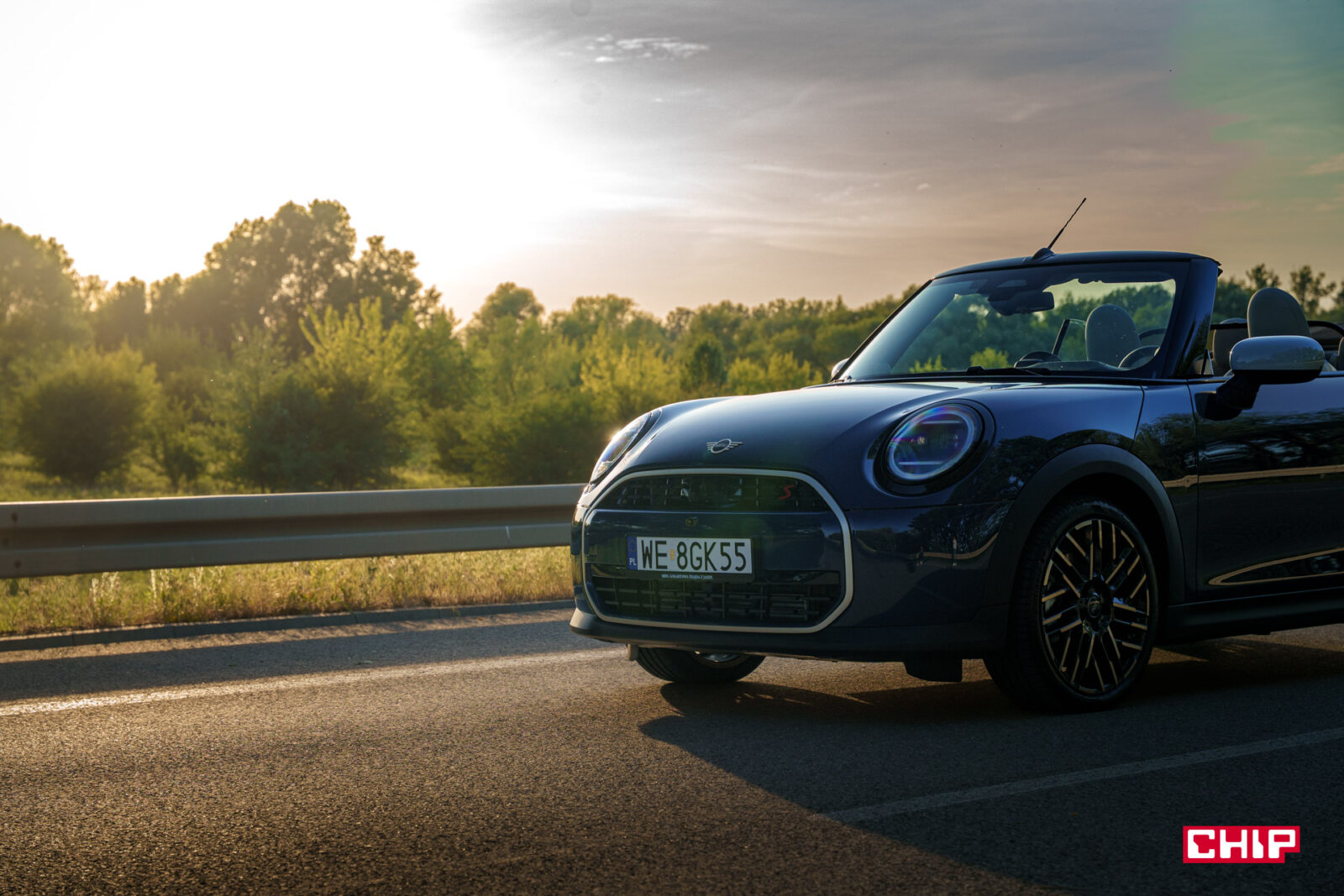Zawieszenie jest zestrojone komfortowo, z nutą sportowego charakteru, choć brak stałego dachu sprawia, że nadwozie jest nieco mniej sztywne — na nierównościach czuć solidne drgania. W mieście Cabrio radzi sobie świetnie, dzięki kompaktowym wymiarom i zaawansowanym asystentom, ale prawdziwa magia dzieje się na otwartych drogach. Z otwartym dachem i rykiem silnika każda przejażdżka to mała przygoda, w nocy w akompaniamencie oświetlenia z wybranego trybu MINI Experience.