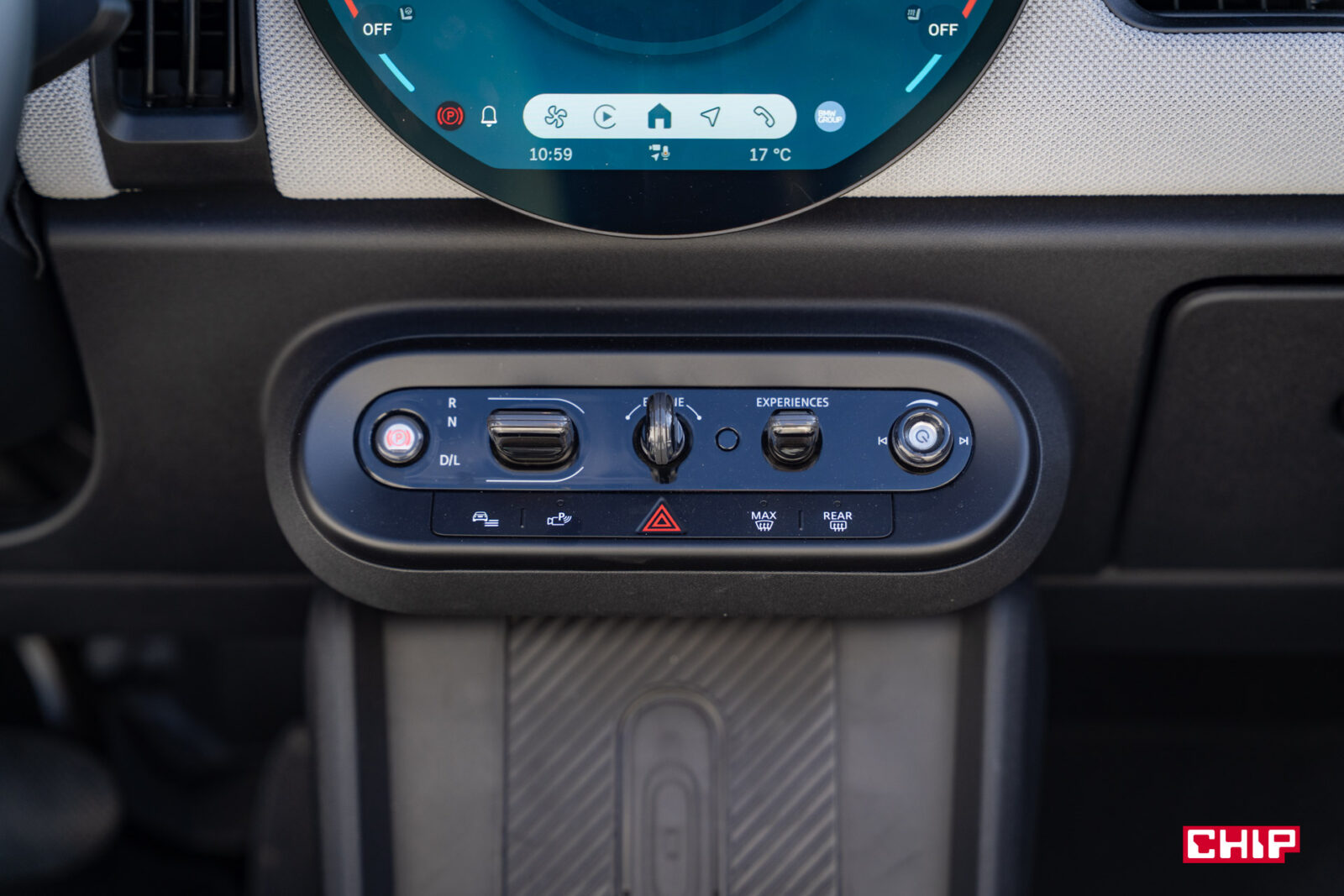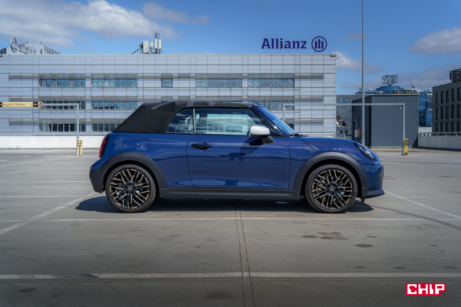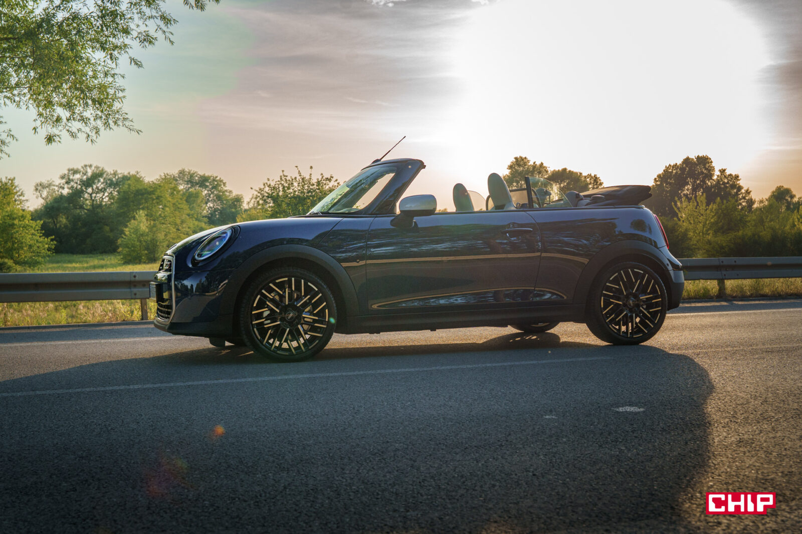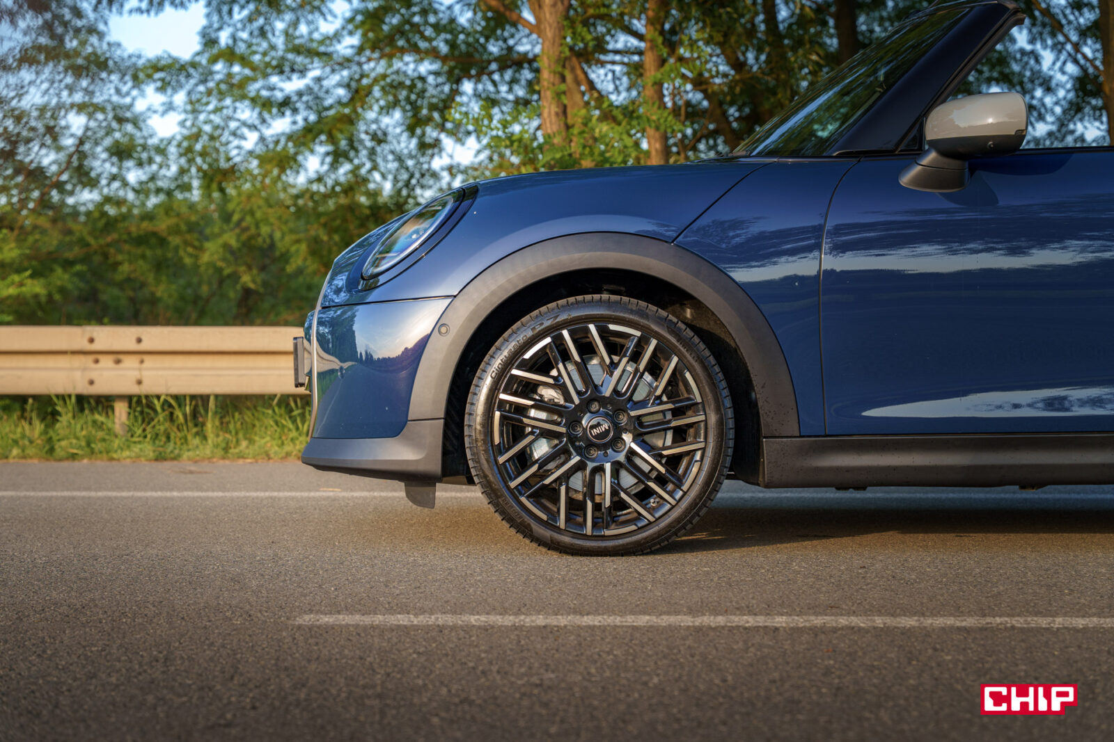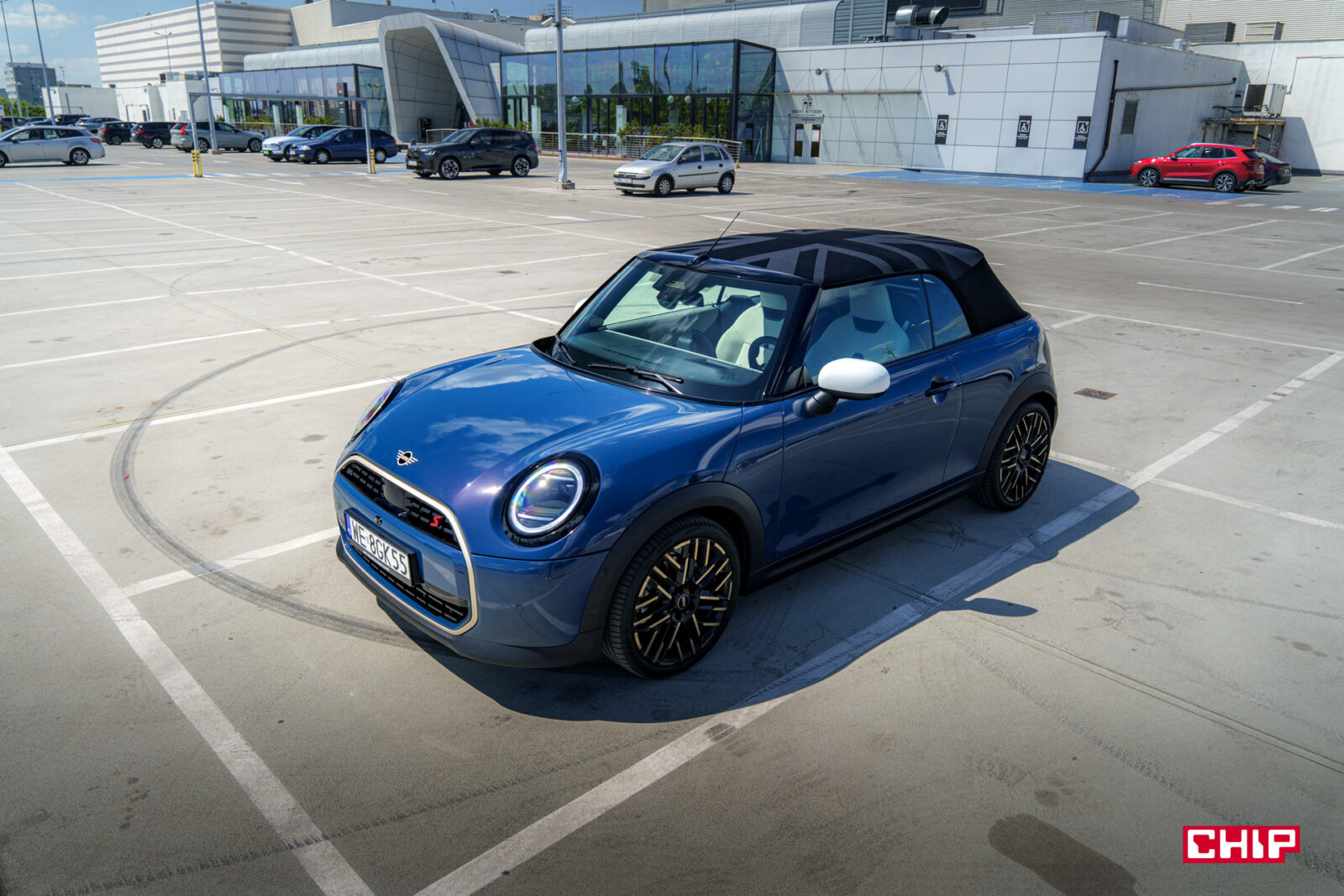 Okrągłe reflektory LED, subtelny grill i tylne lampy z motywem Union Jack są wierne DNA MINI, ale otwarty dach dodaje mu niepowtarzalnego charakteru. Wymiary (3,86 m długości, 1,73 m szerokości) są niemal identyczne jak w SE, ale sylwetka wydaje się bardziej swobodna.