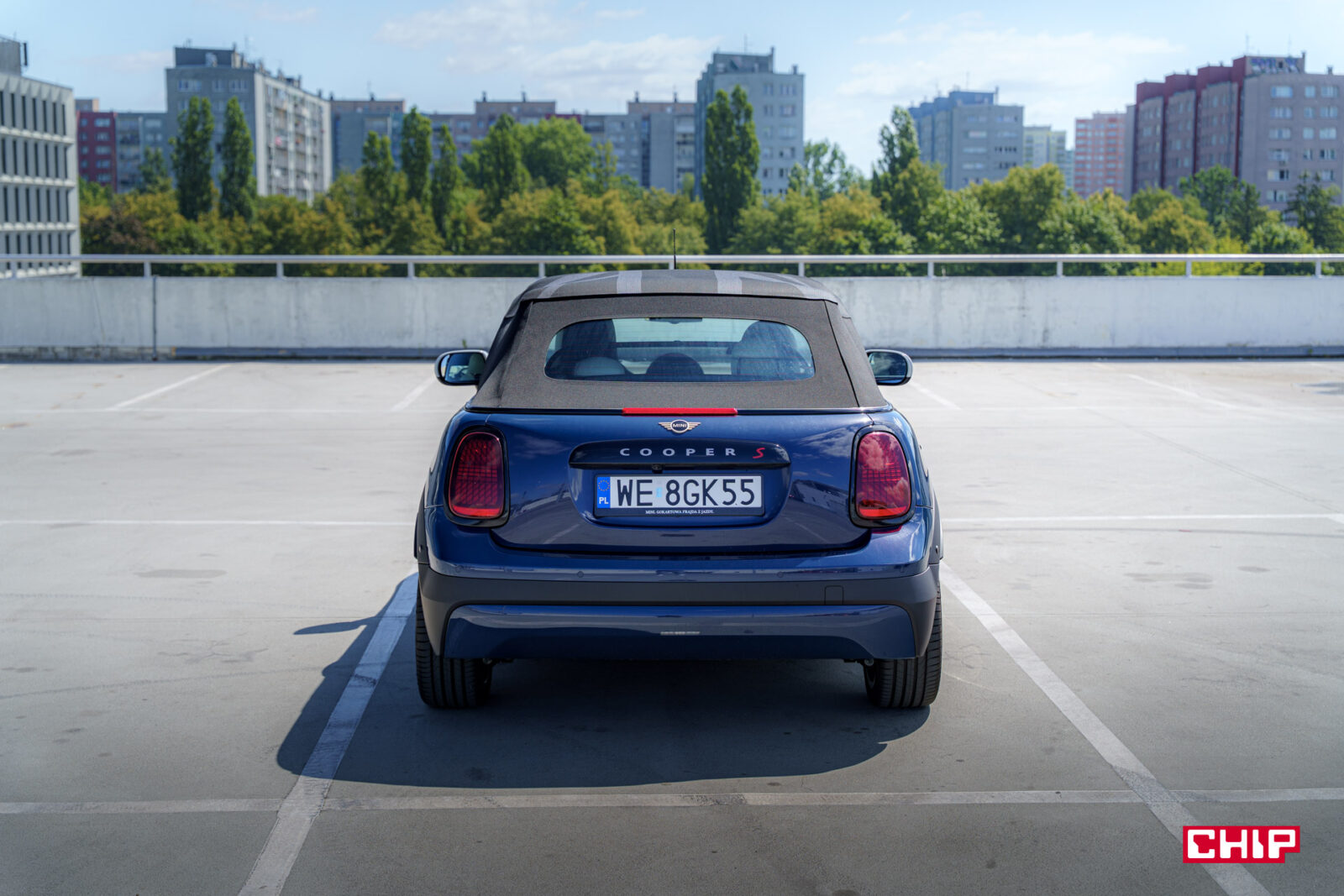 Do tego muszę przyznać, że Cabrio wydaje się zaskakująco mało pewne. Klapą od bagażnika czy drzwiami trzeba konkretnie trzaskać, a i samo zamykanie się dachu wzbudzało we mnie niemały lęk. Nie wyglądało to pewnie i oglądając ten proces przez niemal 20 sekund byłem w pogotowiu, żeby ręką pomóc dachowi trafić w dziurę na górze obramowania przedniej szyby. Nie jestem jedyną osobą z redakcji, która miała podobne odczucia, więc nie wynika to raczej z mojego przewrażliwienia, a zwyczajnie z tego, jak ten proces przebiega. Do tego szkoda, że trzeba cały czas trzymać przycisk podczas otwierania i zamykania dachu — chociaż w teorii możemy to robić do prędkości 30 km/h, to w praktyce jest to mało wygodne podczas jazdy i lepiej podejmować takie akcje podczas postoju. To nie jest tylko przypadłość MINI, bo i wielu innych producentów nie zapewnia automatycznego chowania się dachu, ale byłby to bardzo miły dodatek. Co też raczej oczywiste, wyciszenie kabiny w Cabrio jest zdecydowanie gorsze — nawet przy złożonym dachu słychać wszystko tak, jakbyśmy mieli otwarte okna.