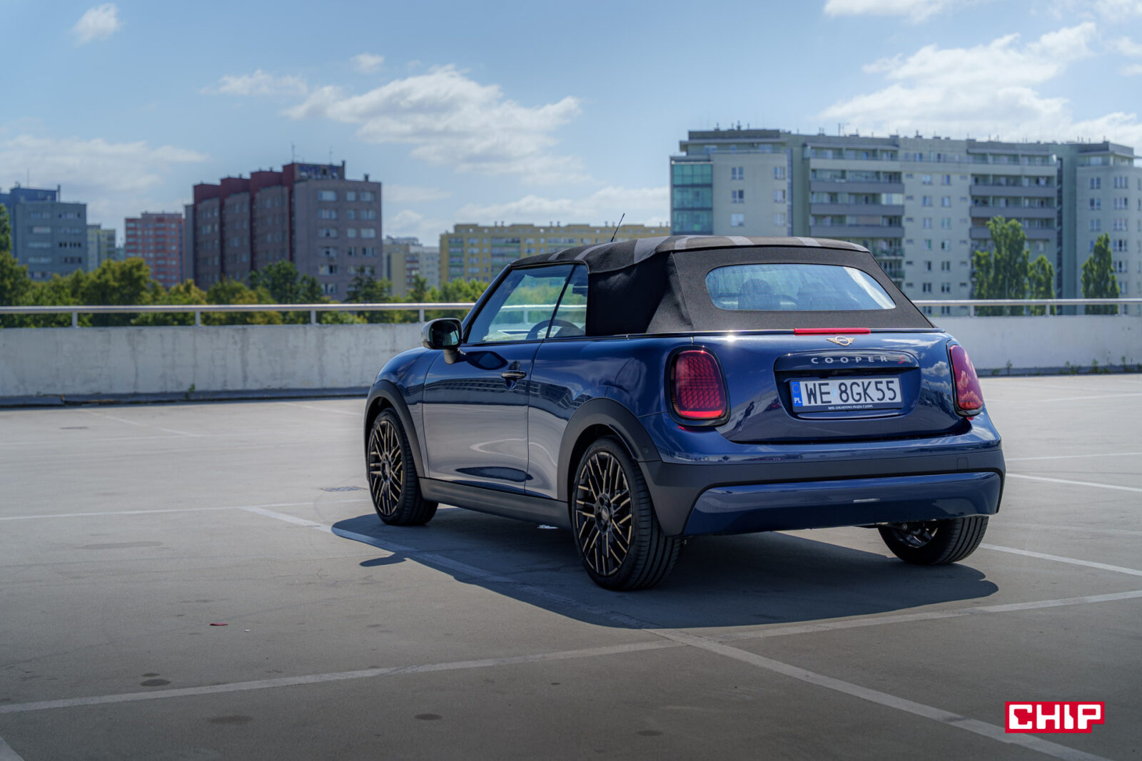 Cabrio to z kolei samochód dla marzycieli, którzy chcą, by każda jazda była celebracją. Otwarty dach zmienia zwykłą przejażdżkę w coś wyjątkowego — idealne na weekendowe wypady za miasto (do dwóch osób, oczywiście), kręte drogi czy wieczorne eskapady. Oświetlone centrum Warszawy skąpane w blasku księżyca w lipcowy wieczór z perspektywy MINI ze schowanym dachem to naprawdę sympatyczne przeżycie. W codziennym życiu ma jednak swoje minusy. Zużycie paliwa (około 7 l/100 km w cyklu mieszanym przy spokojnej jeździe) jest rozsądne, ale w mieście może wypadać drożej niż SE. Mały bagażnik (160 l) zmusza do minimalistycznego pakowania, jakbyśmy wybierali się na lot Ryanairem, a ciasnota z tyłu sprawia, że to auto dla singla lub pary. W deszczowe dni czy zimą dach musi być zamknięty, co naturalnie odbiera mu trochę uroku. Systemy asystujące (pasa ruchu, parkowania) znacznie ułatwiają życie, ale Cabrio to bardziej samochód na specjalne okazje niż codzienny środek transportu.
