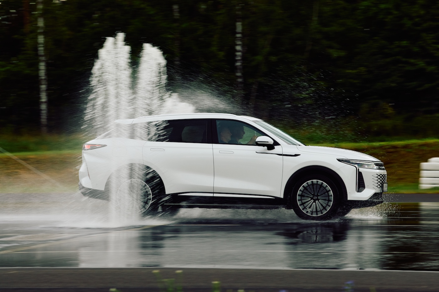 Jeśli chodzi o szarpak, to Omoda 9 radziła sobie naprawdę świetnie. Jedyny zarzut jaki mam, to może fakt, że nie mamy tutaj steer-by-wire, przez co trzeba wykonać dużo więcej ruchów, żeby opanować samochód w poślizgu — ale to dotyczy jeszcze znacznej większości samochodów na rynku. Poza tym jednak Omoda 9 poradziła sobie naprawdę świetnie.