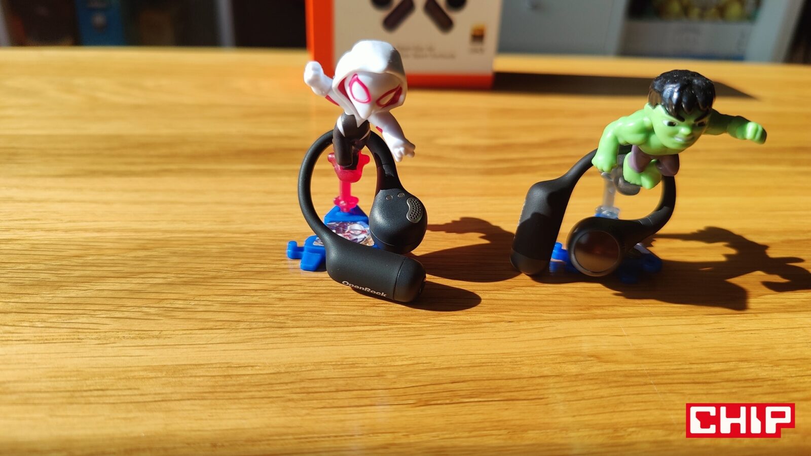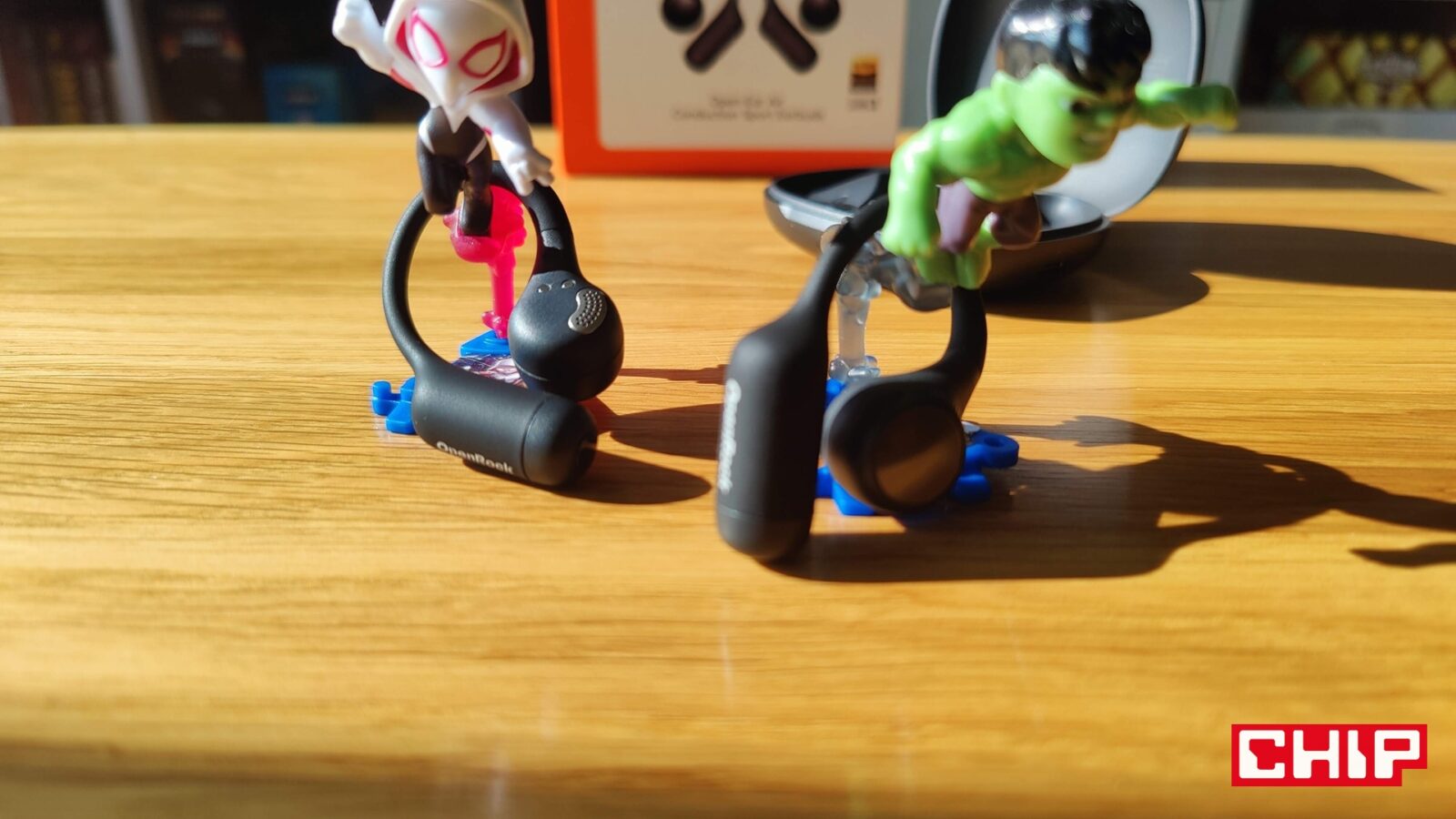 Słuchawki nadają się też do wysłuchiwania audiobooków czy podcastów i zaskoczę was pewnie tym, że tyczy się to również otoczeń o wysokim poziomie hałasu. Moduły z głośnikami nie są bowiem obok naszych uszu, a tuż nad kanałem słuchowym, więc przy odpowiednim poziomie głośności emitowane przez nie dźwięki skutecznie “walczą” z tymi z otoczenia.