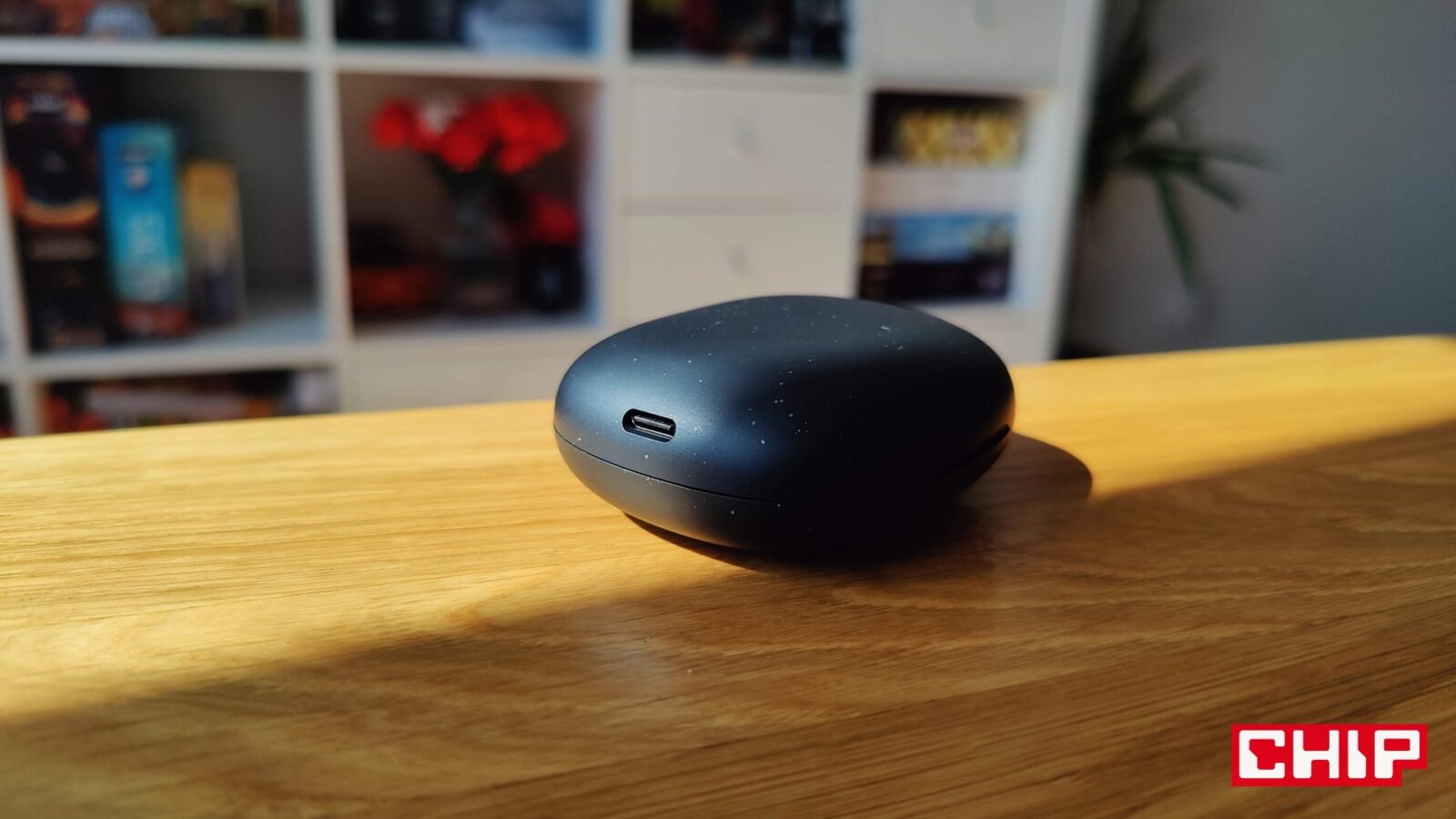 Na krawędziach etui znajdziemy z kolei tylko niewielką diodę i złącze USB-C, a wewnątrz magnetyczne luki na obie słuchawki z dwoma pinami ładującymi oraz przycisk aktywujący proces parowania. W porównaniu do metalowej szufladki z modelu X jest to znacznie lepiej spisująca się na co dzień konstrukcja. Ewidentnie jest bardziej użytkowa niż efektowna, ale jednocześnie nie sprawia wrażenia taniej.