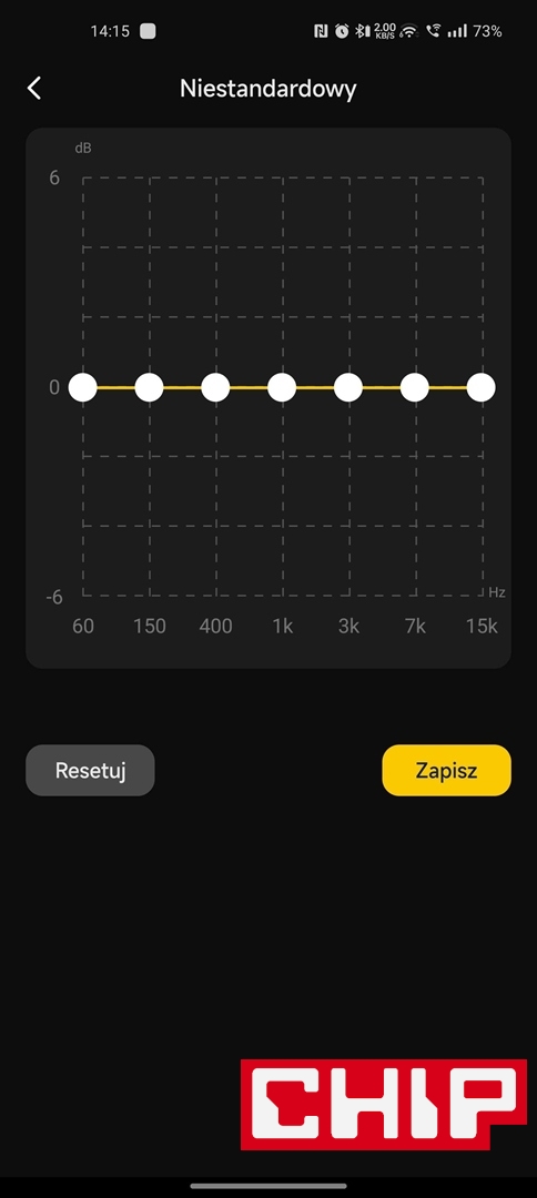 - Własny z opcją dostosowania poszczególnych tonów (60, 150, 400, 1k, 3k, 7k i 15k)