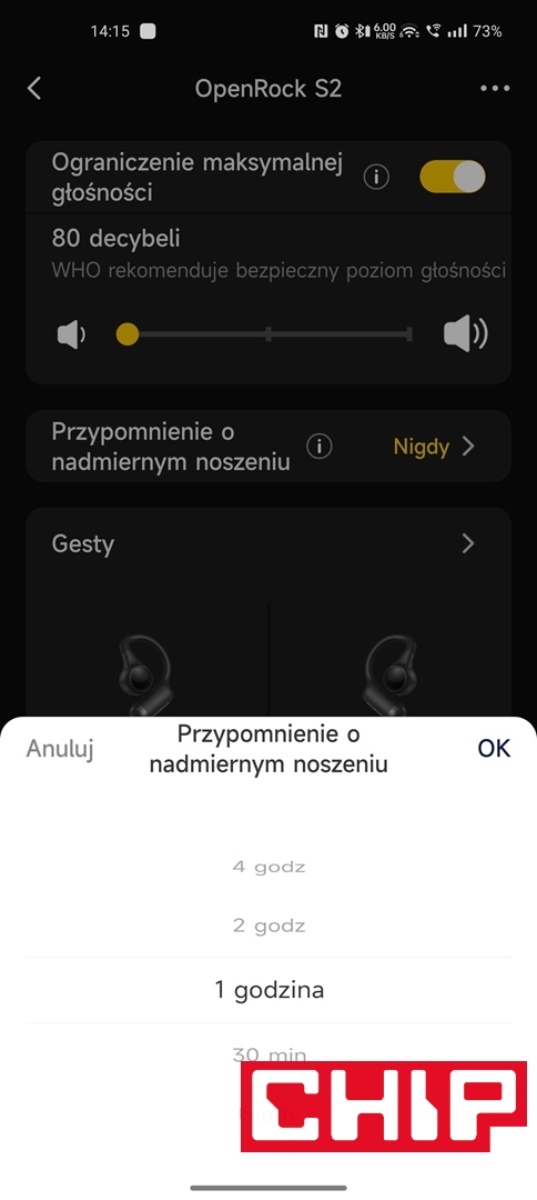 Zanim przejdziemy do podsumowania, warto jeszcze zatrzymać się przy imponującej wytrzymałości OpenRock S2 na jednym ładowaniu. Imponującej jednak przede wszystkim wtedy, kiedy porównujecie wyniki do tego, co oferują typowe słuchawki ANC, bo po około 100-minutowym ładowaniu S2 do 100% możecie liczyć na dobre około 30 godzin odsłuchu w połączeniu z etui.
