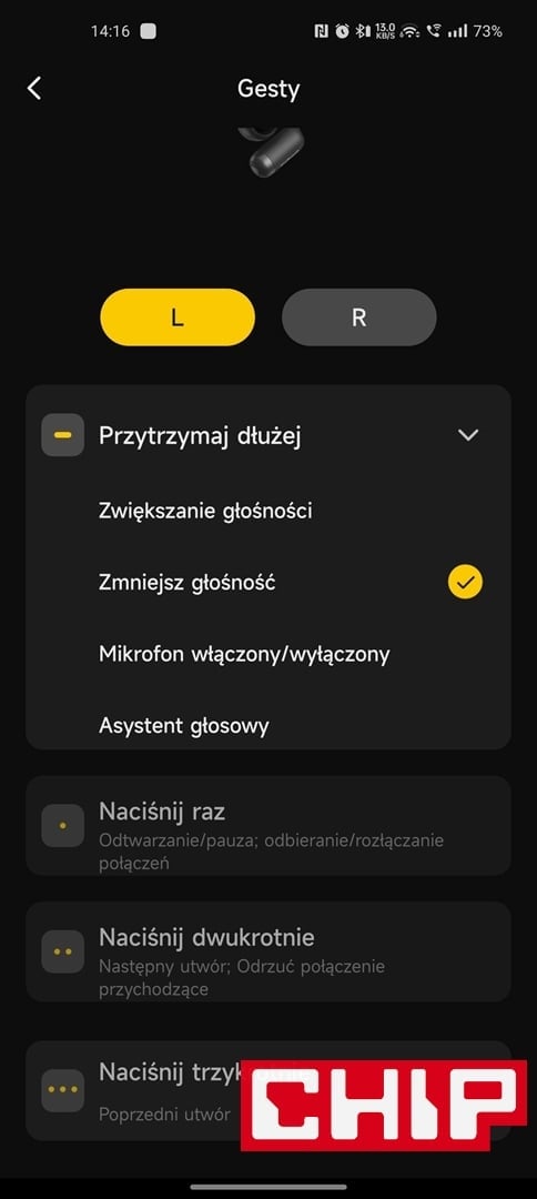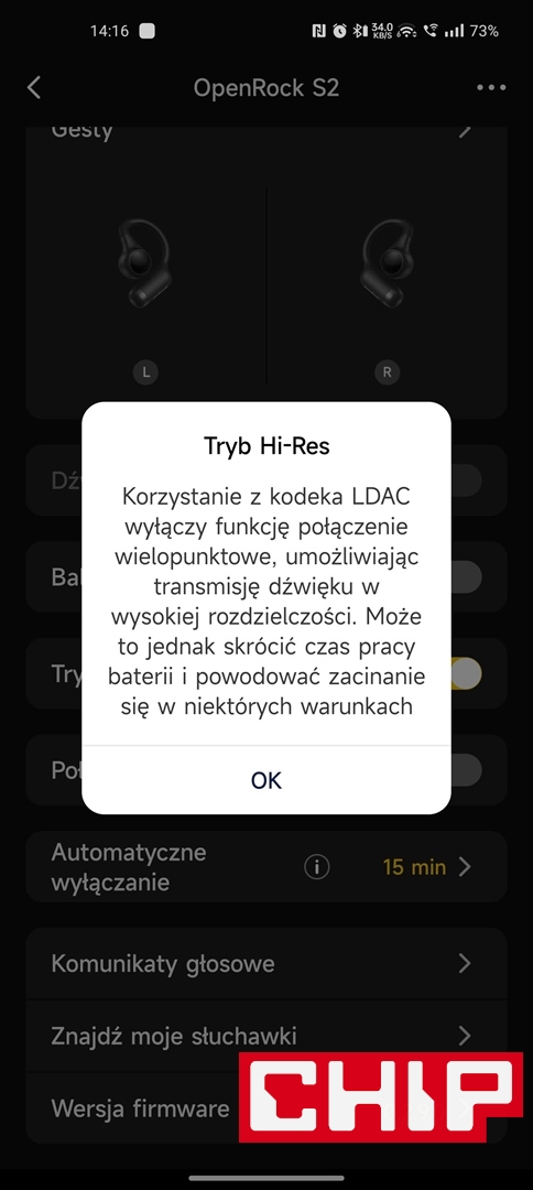 - Włączyć tryb Hi-Res, czyli wykorzystywania kodeku LDAC (różnica rzeczywiście jest słyszalna) kosztem opcji połączenia z dwoma urządzeniami jednocześnie