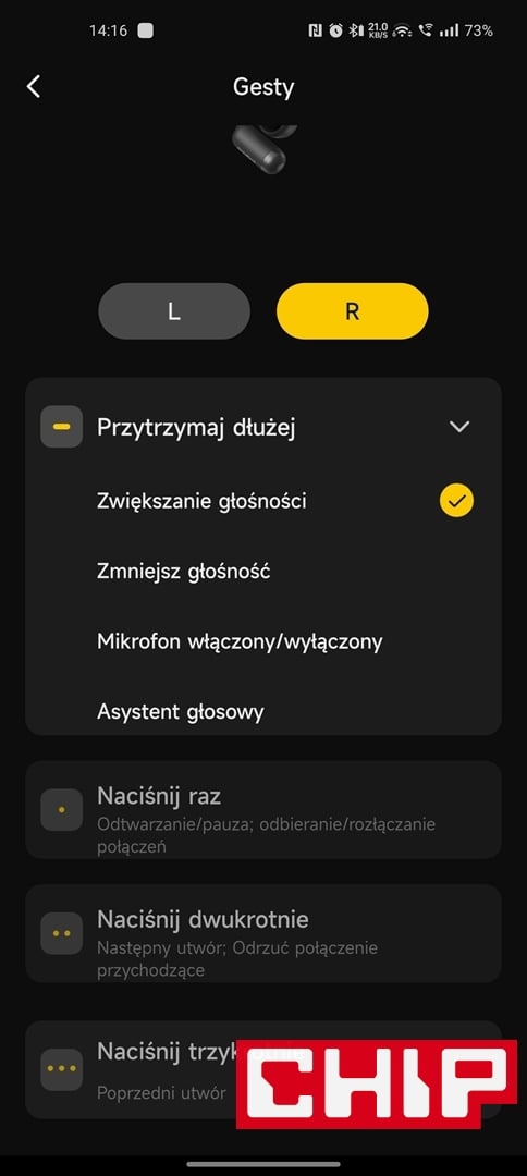 - Podejrzeć gesty i dostosować tylko ten odpowiadający za przytrzymywanie przycisku dłużej