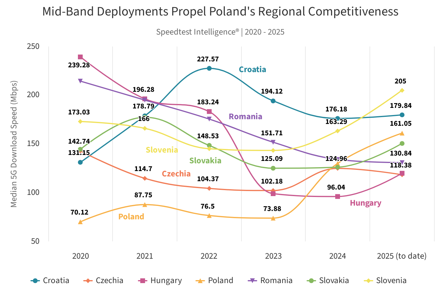Działania operatorów bardzo szybko doprowadziły Polskę z dołka, w jakim znajdowaliśmy się od 2020 roku na tle europejskich sąsiadów. Z szarego końca szybko przenieśliśmy się na trzecią pozycję, za Słowenią i Chorwacją: