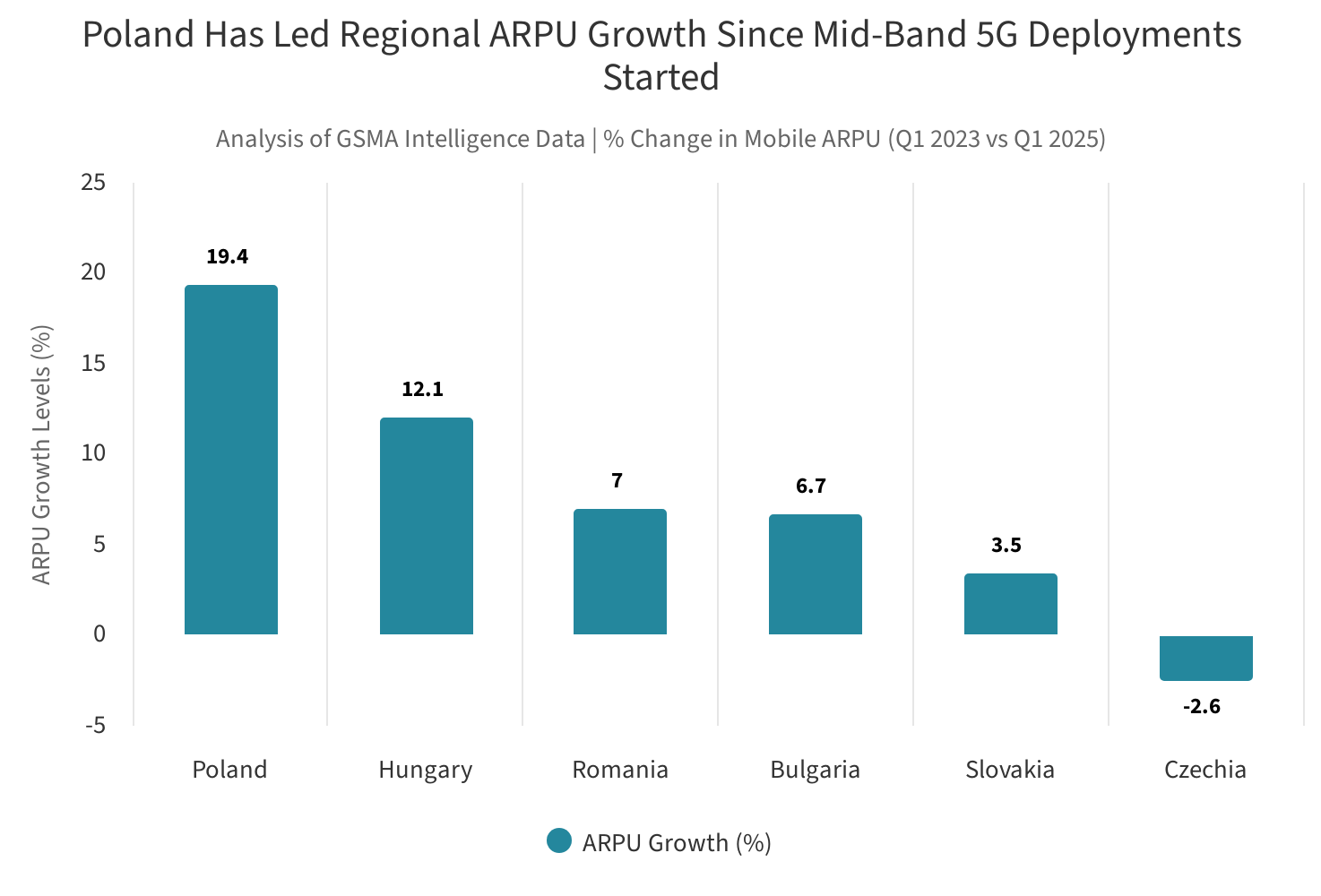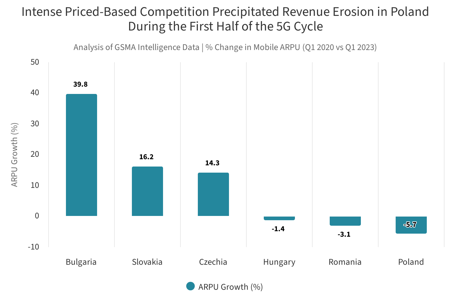 Wprowadzenie sieci 5G miało podnieść przychody operatorów. Tak przynajmniej mówiło się na różnego rodzaju targach czy imprezach branżowych i tak też było. Ale nie w Polsce… Opóźnienia w związku z wdrożeniem sieci 5G ograniczały pole manewru operatorom. Ze względu na brak docelowych prędkości operatorzy nie mogli zaoferować klientom rewolucyjnej prędkości, potężnego przeskoku jakości usług, skoro jedyne co mieli go zaoferowania to proteza 5G uruchomiona na częstotliwości sieci LTE. Dlatego też w okresie od 2020 do 2023 roku średni przychód z klienta w Polsce spadł względem innych krajów z naszej części Europy.