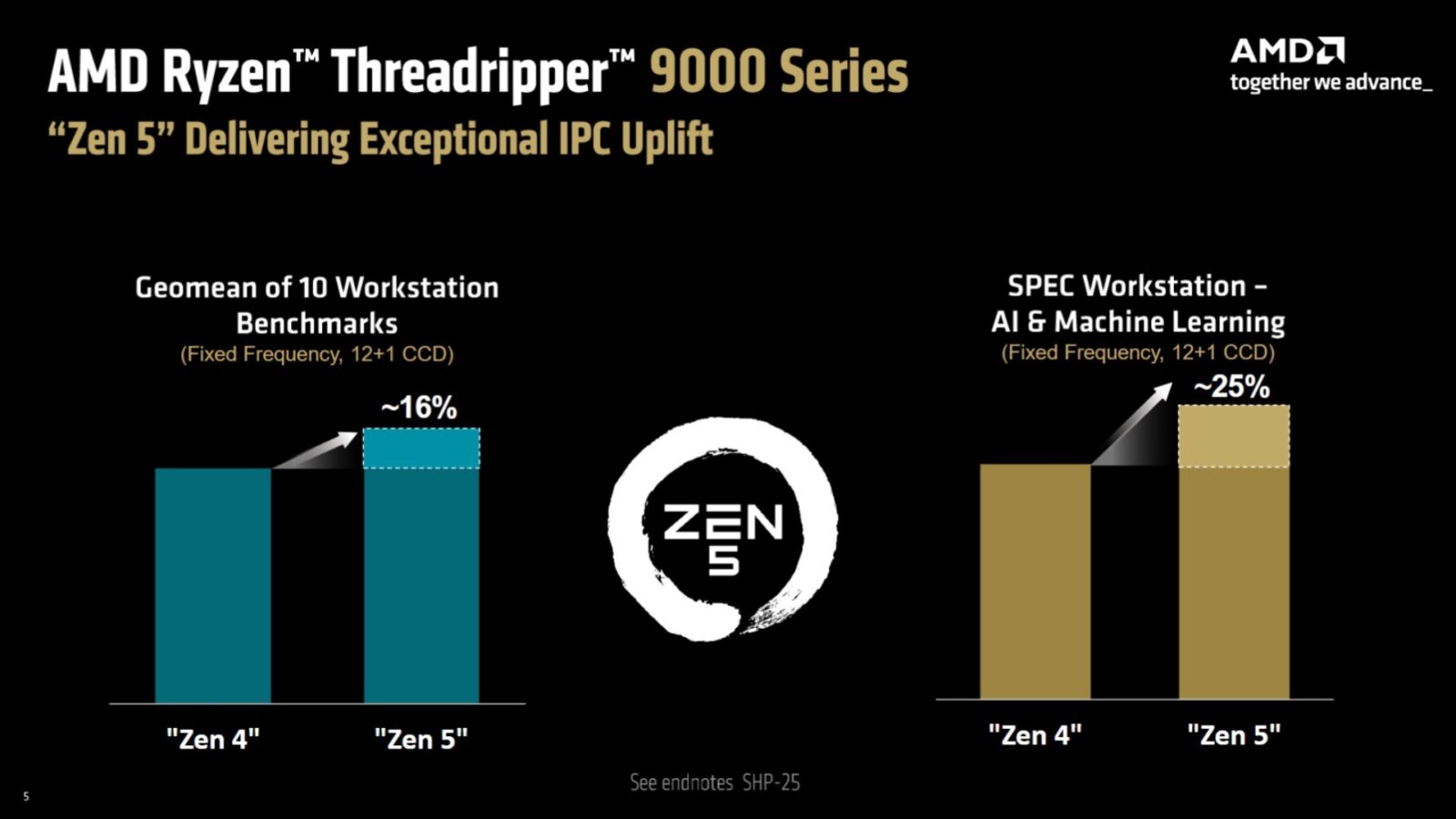 W porównaniu do poprzedniej serii 7000 (Zen 4), liczba rdzeni i pamięci L3 pozostała bez zmian, ale AMD zauważalnie podniosło taktowania (do 5,4 GHz), zwiększyło liczbę linii PCIe 5.0 z 48 do 80, oraz dodało wsparcie dla DDR5-6400 (wcześniej 5200 MT). Platforma nadal (całe szczęście) bazuje na gnieździe sTR5, co oznacza kompatybilność ze starszymi płytami TRX50.