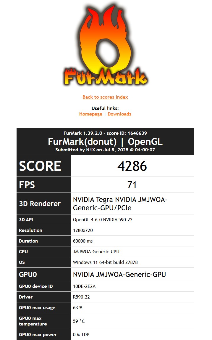 Nadchodzący układ SoC N1X firmy Nvidia pojawił się w bazie danych testów FurMark