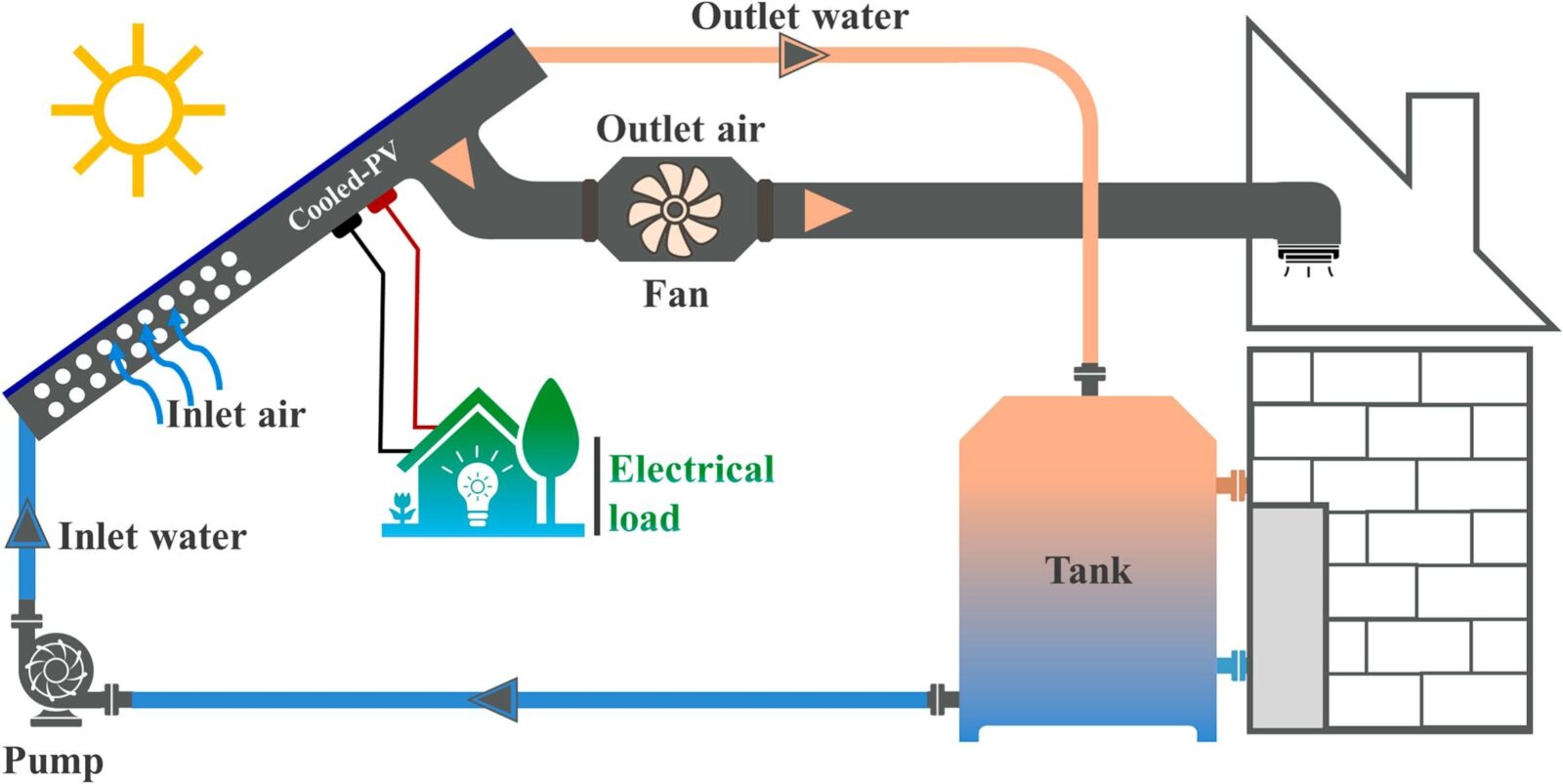 Podstawą tej innowacji jest niewielki panel polikrystaliczny o mocy 60 watów, który został zmodyfikowany o perforowaną ramę i miedziany system podwójnego chłodzenia, bo wodą i powietrzem. Rama miała 152 boczne otwory wentylacyjne, a z tyłu znalazł się wiatrak, który zasysał powietrze z prędkością ok. 1,1 m/s. Dodatkowo, z tyłu panelu został przyklejony miedziany wężyk w formie serpentyny oraz 11 piramidalnych radiatorów, co znacząco zwiększyło przewodnictwo cieplne. Wszystko po to, aby “zbierać” ciepło z panelu fotowoltaicznego. Podczas gdy podgrzana woda chłodząca trafia do zbiornika i może zostać użyta ponownie, tak samo rozgrzane powietrze jest w aktualnej formie projektu po prostu rozpraszane, choć można je zbierać i wykorzystywać np. do ogrzewania wnętrz.