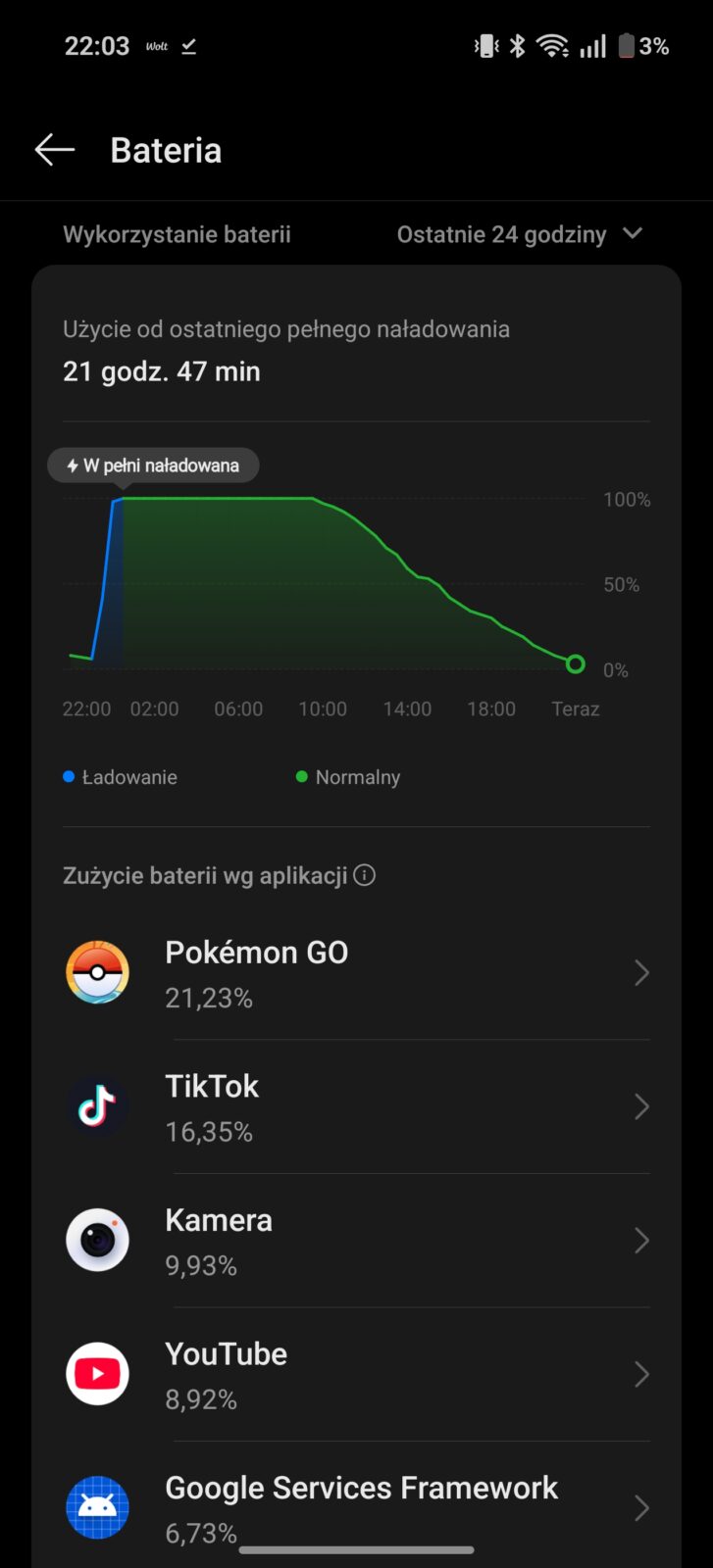 Producent w przekazach premierowych będzie podkreślał długie czasy pracy przy korzystaniu z Whatsappa, poczty e-mail czy Google Meet, ale na co dzień jest to smartfon na dzień. Akumulator 5200 mAh (o 300 mAh mniejszy niż w poprzedniku) będzie działał od rana do wieczora i nie zdarzył mi się dłuższy cykl pracy z większym zapasem energii, nawet gdy przeszedłem na 60 Hz. W praktyce oznacza to dla mnie od 5 do 6,5 godziny z włączonym ekranem, okazjonalnie aktywną łącznością 5G, stale aktywnym Bluetooth oraz Wi-Fi i jasnością automatyczną. Po skorzystaniu wyłącznie z Wi-Fi i rezygnacji z Bluetooth dociągniemy do 7 godzin aktywnego ekranu.