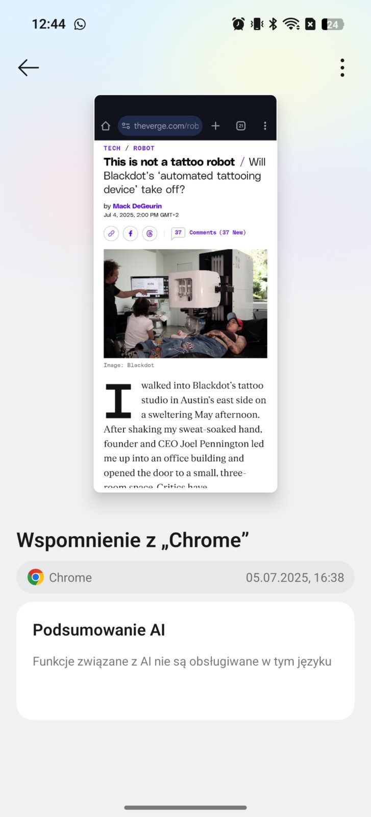 To niejedyna nowość. OnePlus stworzył rozwiązanie podobne do tego z telefonów Nothing oraz CMF. Mind Space gromadzi nasze wspomnienia związane z treścią ekranu w jednym miejscu. To taki poszerzony o kontekst zrzut ekranu, przy czym jeszcze nie potrafi generować podsumowań AI w języku polskim i przez to nie generuje też podsumowań chociażby dla anglojęzycznych witryn. To trochę uboższy kuzyn rozwiązań z telefonów Nothing, bo nie pozwala dołączać nagrań głosowych do notatek.