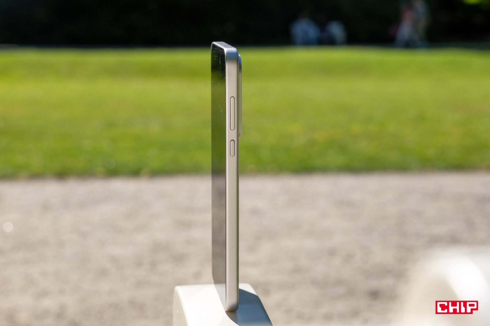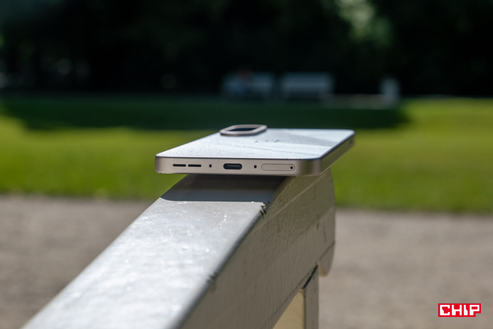 Uszczerbki widać także na bocznej ramie z tworzywa. Po lewej stronie, w górnej części, nie znajdziemy będącego symbolem dla tej marki suwaka, a jedynie przycisk. Po prawej stronie – standardowo – przyciski do regulacji głośności oraz blokowania ekranu. Te dobrze się klika i nie poruszają się poza wyznaczony im obszar. U dołu znajdziemy port USB-C, maskownicę głośnika oraz slot na dwie karty Nano SIM.