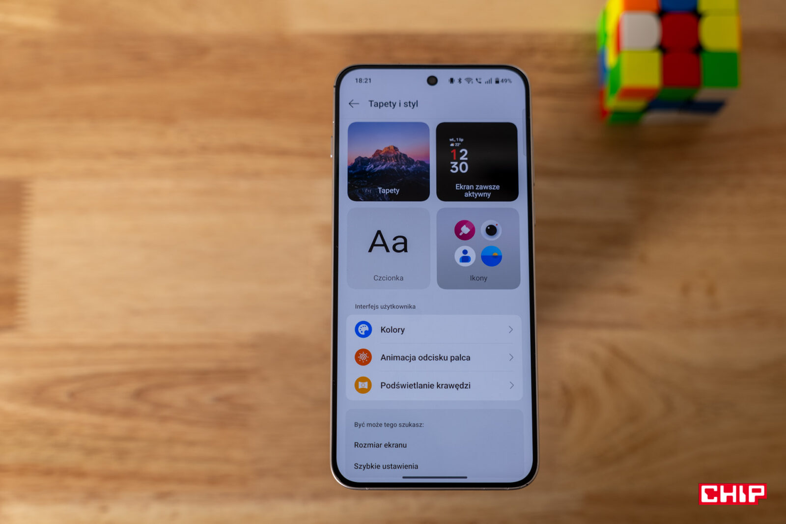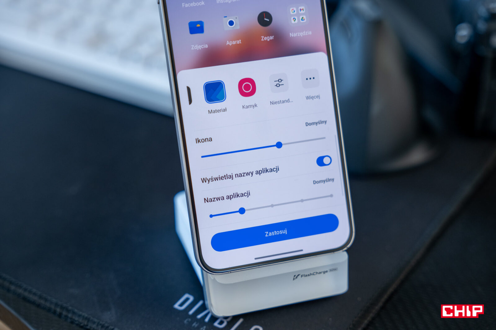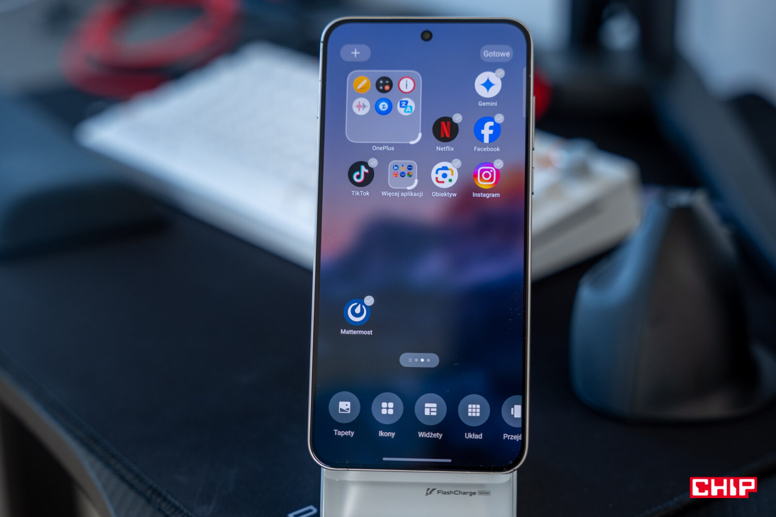 OxygenOS zawsze słynęła z personalizacji i nie inaczej jest tym razem. Ikony mogą mieć różne kształty i rozmiary, a dodatkowo na wybranych rynkach (nie w Polsce) możemy wgrywać inne rozwiązania. Dla Polaków zostaje dopasowanie koloru ikon do koloru tapety, co zmniejsza czytelność, ale poprawia spójność. Częściowo spójność możemy zachować w panelu powiadomień i przełączników dzięki dopasowaniu wiodących kolorów systemu do tapety. Sporo z narzędzi do personalizacji w OxygenOS funkcjonuje już od lat, możecie je też znać ze smartfonów realme czy Oppo.
