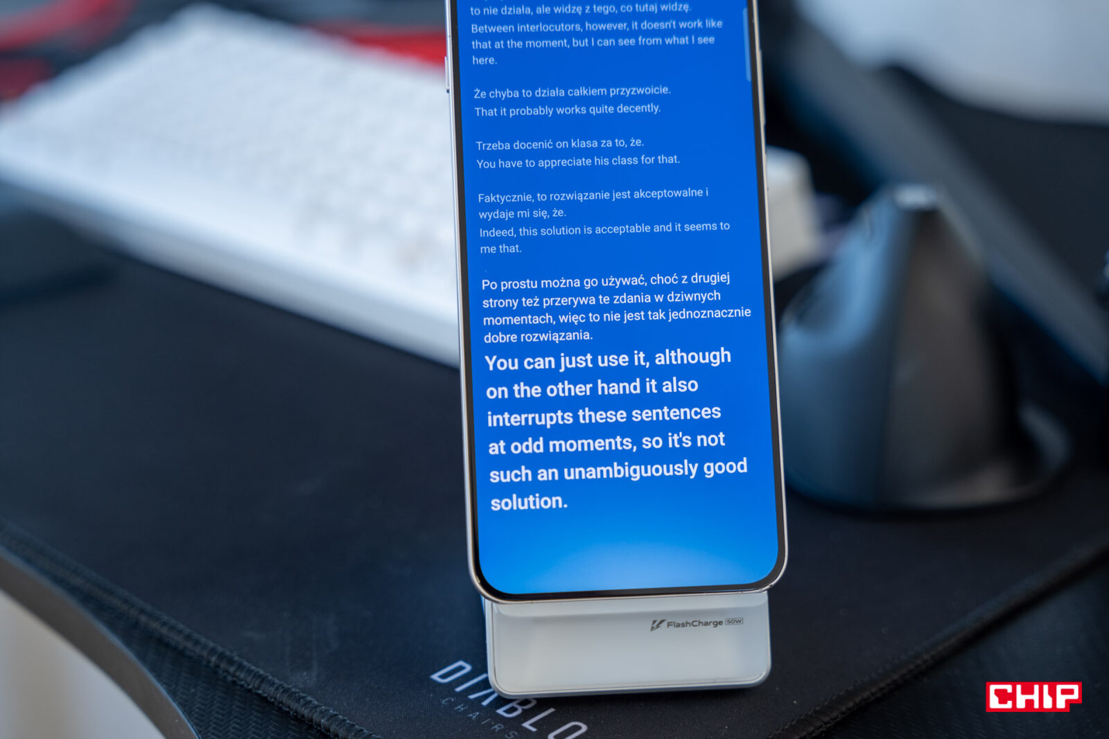 Sztuczna inteligencja pomaga też w tłumaczeniach, a OnePlus wprowadził osobną aplikację do tłumaczeń. Te nie są symultaniczne, ale za to są dość adekwatne i nie mają dużych opóźnień. Najlepiej działają w tłumaczeniach polsko-angielskich. Rozwiązanie może też służyć do tłumaczenia stron po wykorzystaniu pływającego widżetu i radzi sobie z tym zadaniem całkiem dobrze, choć dubluje się z Zakreśl, aby Wyszukać (Circle to Search). Na ten moment nie wyrzucałbym tłumacza Google czy zewnętrznych translatorów, ale to zawsze coś nowego.