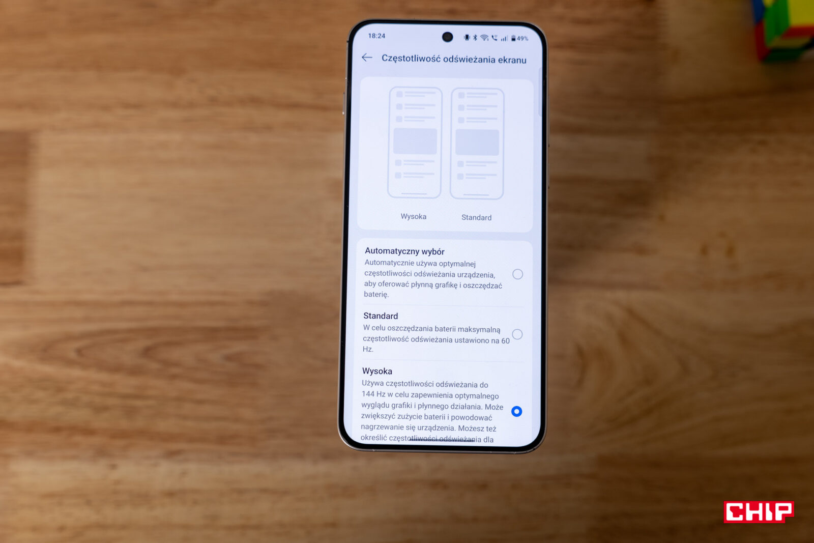 Czy którykolwiek producent jest w stanie zaskoczyć ekranem w smartfonie? Z pewnością nie OnePlus, bowiem w Nord 5 jedyne, co jest niecodzienne, to przekątna aż 6,83 cala i odświeżanie do 144 Hz – większe niż standardowe 120 Hz. Nie jest to jednak panel LTPO, więc przejścia między częstotliwościami odświeżania będą skokowe. Ponadto nie ma zbyt wielu momentów, w których odczulibyście obecność 144 Hz – zarówno w interfejsie, jak i grach nie pojawia się zbyt wiele momentów z płynnością większą niż 60 klatek na sekundę.
